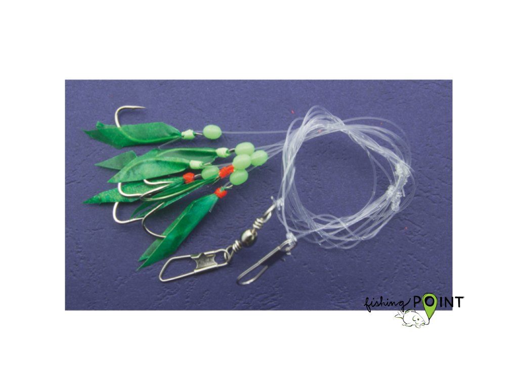 Systémy na lov sleďů jsou dostupné v mnoha atraktivních barvách a vyrobené z materiálu imitujícího rybí šupiny. V závislosti na provedení jsou osazeny pěti nebo šesti háčky. Informace o dostupných velikostech háčků a průměrech vlasců najdeš níže. Každý přívěsek obsahuje zelené korálky, které ve tmě svítí, což dále zvyšuje účinnost lovu.