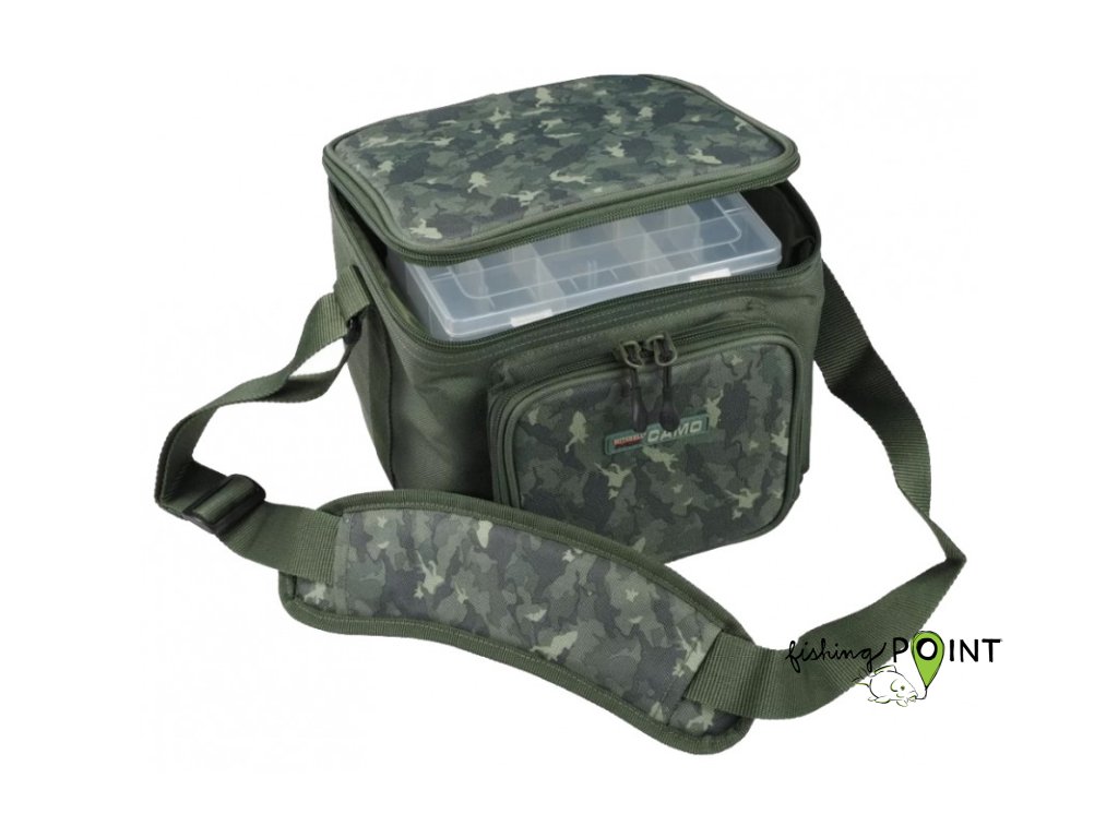 Taška na rybářské doplňky, vybavená krabičkami.Doplňkové parametry