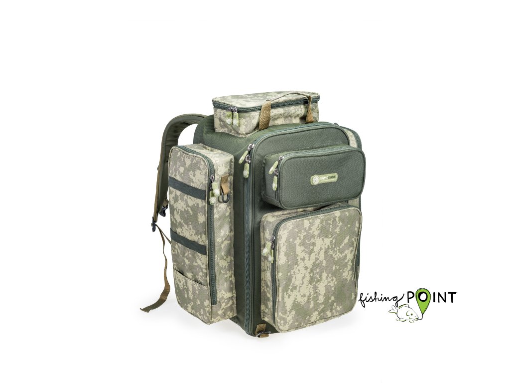 Velký batoh pro pohodlnou přepravu velkého množství rybářského vybavení. Je uzpůsoben ke snadnému zasunutí pod lehátko. Hlavní komora je snadno přístupná díky kompletně otevíratelné přední stěně. Pět velmi prostorných vnějších kapes umožňuje přehledné uložení systémových boxů a celé řady drobného příslušenství. Polstrované popruhy i anatomicky tvarovaná a odvětraná zádová část umožňují pohodlné nošení naplněného batohu i na delší vzdálenosti. Odolný, nepromokavý a snadno omyvatelný materiál B-POL600D v CamoCODE včetně originálních táhel zipů podtrhují prémiovou kvalitu tohoto batohu.Počet kusů v balení: 1Objem: 60 lBarva: camo / zelenáRozměr: 52 x 32 x 30 cm