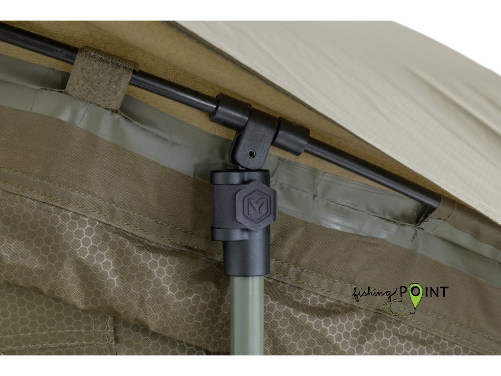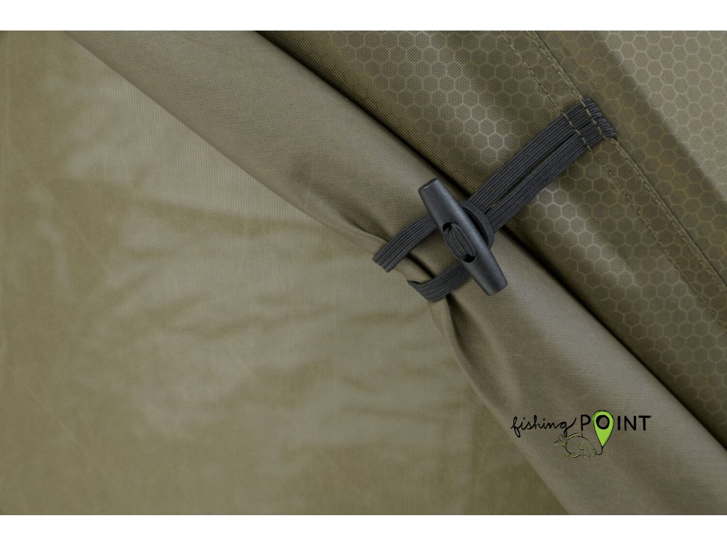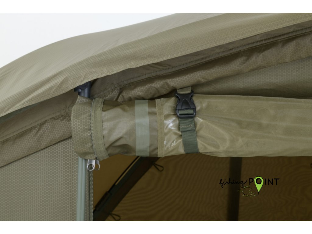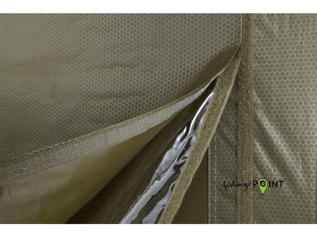 Do posledního detailu propracované brolly značky Mivardi. Zachovává klasickou deštníkovou konstrukci, avšak s použitím prostorově úsporného systému centrálního bloku a vzpěr. Tím dochází k maximalizaci místa nad hlavou, pokud sedíte na lehátku. Toto brolly přináší řadu unikátních a inovativních konstrukčních detailů, které výrazně zvětšují vnitřní prostor, zvyšují stabilitu a zrychlují rozkládání a skládání. Velmi důležitým prvkem jsou prodloužená dvoudílná zadní žebra, která mohou, ale nemusí být při transportu složena. Společně s optimalizovanou geometrií ostatních žeber vytváří extrémně velký vnitřní prostor s téměř obdélníkovým půdorysem. To umožňuje použití tohoto brolly i v kombinaci s největšími lehátky, přičemž uvnitř stále zůstává dostatek místa na stolek a zavazadla. Přední část je zpevněna a stabilizována dvoudílnou sklolaminátovou výztuhou s unikátně navrženým způsobem fixace. Konstrukce brolly nad vchodem vytváří kšilt, který chrání prostor dveří před deštěm. Přední okno je řešeno jako třívrstvé (síťka / transparentní PVC / nylonový plášť). Celou přední stěnu je možné úplně odepnout. Plášť je vyroben z materiálu M-TEC300 s hexagonální texturou disponuje vodním sloupcem 8000mm a zvýšenou mechanickou odolností. Čtyři přiložené bouřkové tyče jsou vybaveny rychlospojkami pro velmi snadné a rychlé upevnění ke konstrukci brolly. Jsou rovněž osazeny novými zámky Mivardi s extrémním přítlakem, a proto umožňují perfektní napnutí pláště. Brolly Entrix je standardně dodáváno v kompletní výbavě včetně podlážky a předního panelu.Hmotnost: 7,8 kgVodní sloupec: 8000 mmPočet kusů v balení: 1Výška: 147 cmTransportní rozměr: 163 x 22 cmRozměr: 270 x 200 cmMateriál: M-TEC300Typ podlážky: Suchý zipDoplňkové parametry
