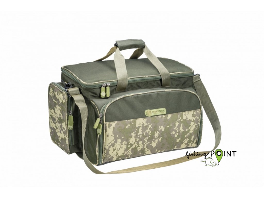 Velmi prostorná chladící taška s bočními kapsami na příslušenství a velkou přední kapsou, vybavenou kompletní sadou jídelního příslušenství pro dvě osoby. Obsahuje dva odolné talíře, kompletní příbory, dózy na cukr a sůl s precizním silikonovým těsněním, krájecí prkénko, vroubkovaný nůž, dva termohrnky, otvírák na pivo a víno a dva menší froté ručníky. To vše atraktivním designu série CamoCODE.Barva camo zelenáRozměr 47 x 25 x 30 cmDoplňkové parametry