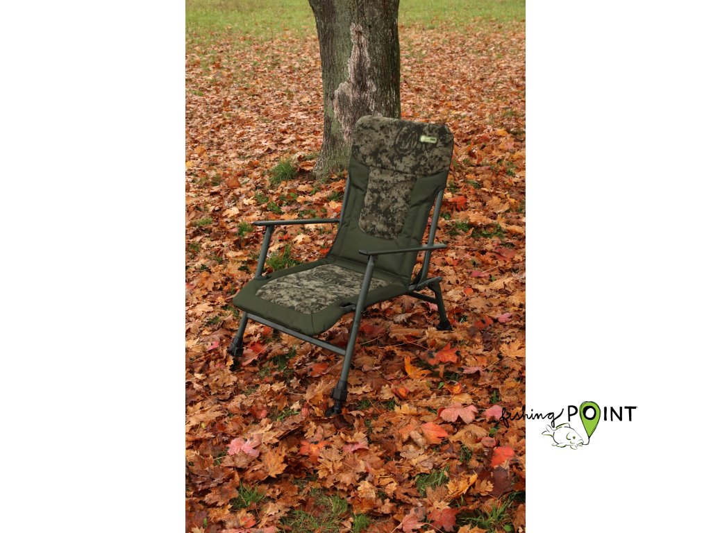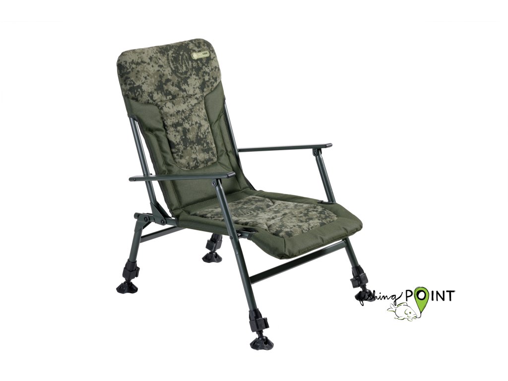 Kompaktní, avšak mimořádně stabilní a robustní křeslo se čtyřmi teleskopickými nohami a pevnými područkami. Minimální transportní rozměry jej předurčují pro kratší vycházky a rybolov na hůře přístupných místech. Nijak však nesnižují jeho celkovou pevnost ani nosnost. Díky speciálně tvarovanému rámu sedáku nabízí toto křeslo nečakaně pohodlné sezení. Samovýsuvné teleskopické nohy jsou vybaveny výkyvnými patkami proti zaboření.Rozměr sedací části (šířka x délka): 48 x 48 cmRozměr zádové části (šířka x délka): 48 x 56 cmVýška sedáku od země (od - do): 30 - 41 cmTransportní rozměr: 72 x 65 x 14 cmHmotnost: 5,3 kgBarva: digitální camoNosnost : 140 kgRozměr: Rozměr područek 42 x 4 cmVýška: Maximální výška rozloženého 91 cmDoplňkové parametry