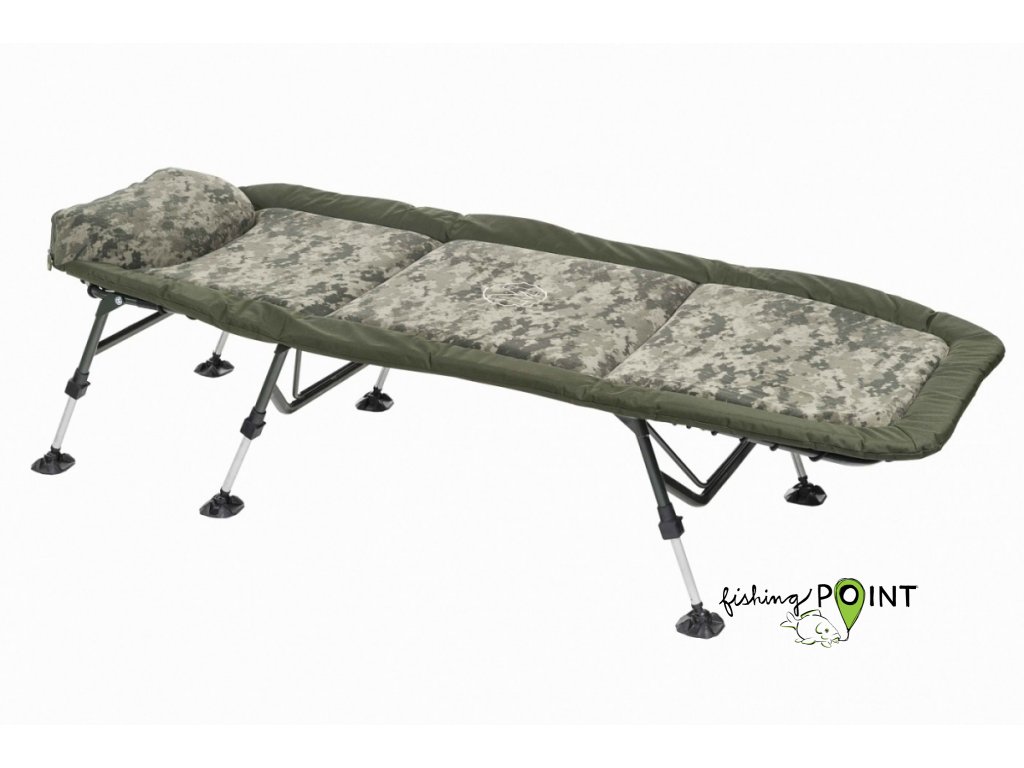 Popis produktu Tento produkt „Lehátko CamoCODE Flat6“ v průběhu roku 2018 nahradí existující produkt „Lehátko Stealth Flat6“. Jedná se pouze o změnu názvu a zařazení produktu do nové ucelené série CamoCODE. Samotný produkt „Lehátko CamoCODE Flat6“ je zcela identický se stávajícím produktem „Lehátko Stealth Flat6“. Extrémně lehké, velké a 100% ploché lehátko ve velice atraktivním designu s digitálním maskováním. Nadstandardně silná a velmi komfortní matrace s fleecovou vrchní vrstvou nabízí nejúčinnější systém regulace tuhosti pomocí elastického šněrování na spodní straně. Další výhodou jsou nohy s rozměrnými výkyvnými patkami a možností velkého vysunutí. Lehátko je dostupné ve variantě s osmi nebo se šesti nohami. Polštář = délka - 30 cm, šířka - 65 cm, výška - 15 cm Regulace upínání zad = délka - 60 cm, šířka - 70 cm Konstrukce = průměr trubek 2,5 cm Tabulka parametrů Výška sedáku od země (od - do) 37 - 52 cm Transportní rozměr 93 x 80 x 30 cm Poznámky 6 nohou Počet kusů v balení 1 Hmotnost 8,6 kg Barva digitální camo Nosnost 140 kg Rozměr 210 x 86 cm Materiál Lehká a velmi stabilní konstrukce s pevnou matrací a fleecovým potahemDoplňkové parametry