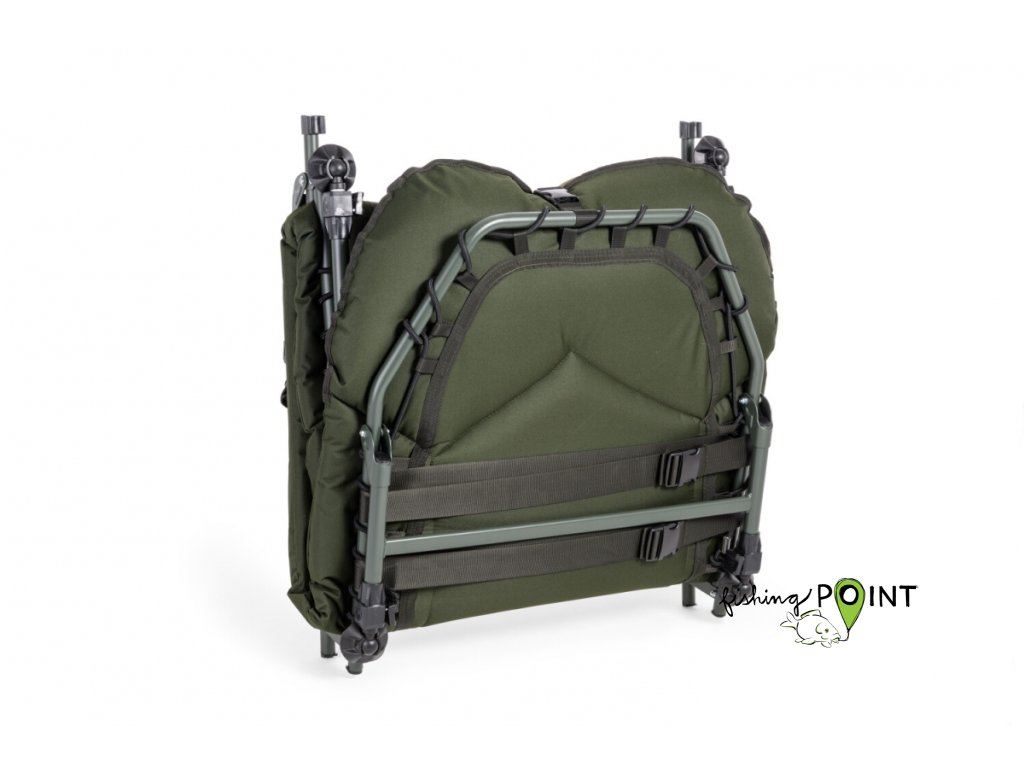 Velké osminohé lehátko úplně novém unikátním designu. Nově navržená zvětšená matrace je vybavena novým typem polstrováním s větší tloušťkou. Její atraktivní anatomické tvarování kombinuje prvky nového designového jazyka značky Mivardi s důležitými detaily pro zvýšení celkové ergonomie. V kombinaci s propracovaným systémem nezávislé regulace tuhosti matrace ve spodní, střední a horní části nabízí toto nové lehátko ve své kategorii dosud nedostupný komfort. Potah lehátka využívá kombinaci velmi pohodlného a hřejivého fleece na polštáři ve střední části s vysoce odolným nylonem na okrajích a ve spodní části. Teleskopické nohy s výkyvnými patkami proti zaboření jsou osazeny unikátními zámky výsuvu Mivardi, které lze ovládat stlačením směrem dolů nebo zboku.Výška rámu od země
