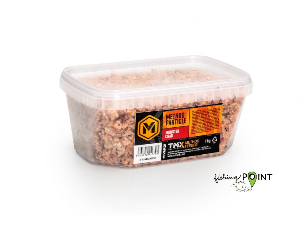 Pečlivě vyladěný mix prémiového drceného partiklu pro lov kaprovitých ryb. Jednotlivé druhy semen jsou vařeny v páře a následně drceny na směs s optimální zrnitostí a lepivostí. Tento nejšetrnější způsob tepelné úpravy zachovává přirozenou chuť a vůni. Při jeho použití je rovněž zachována i maximální atraktivita přírodních složek a nedochází ke ztrátě živin, jako je tomu při vaření ve vodě. Směs má mírně nakyslou chuť, způsobenou přidáním malého množství kyseliny mravenčí. Ta působí jako atraktor pro ryby a zároveň plní funkci šetrného přírodního konzervantu. Method partikl je dodáván v několika účinných příchutích a je plně připraven k použití. Díky své konzistenci výborně drží v krmítku. Po dopadu do vody okamžitě uvolňuje pro ryby neodolatelný mrak jemných částic. Velké množství hrubších kousků pak udržuje ryby delší dobu v lovném místě a napomáhá k selekci větších kusů. Tento partikl Mivardi neobsahuje glycerin, monopropylenglykol ani jiné podobné stabilizační látky, které obalují jednotlivá zrna a potlačují jejich přirozenou atraktivitu a zhoršují fungování v chladnější vodě.Hmotnost: 1 kgDoplňkové parametry