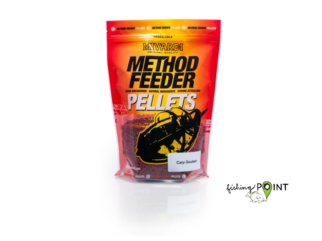 Tyto pelety obsahují velmi účinné výtažky z koření a další typické složky, používané v boilies a doplňcích Mivardi Kapří guláš. Spolu s rybími moučkami, rybími a mléčnými proteiny tvoří velmi atraktivní a účinnou návnadu, která uvolňuje intenzivní potravní signál. Fungují celoročně včetně situací, kdy jsou ryby velmi málo aktivní.