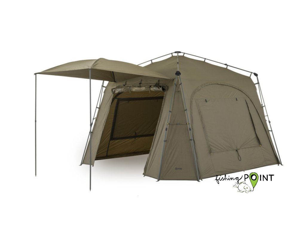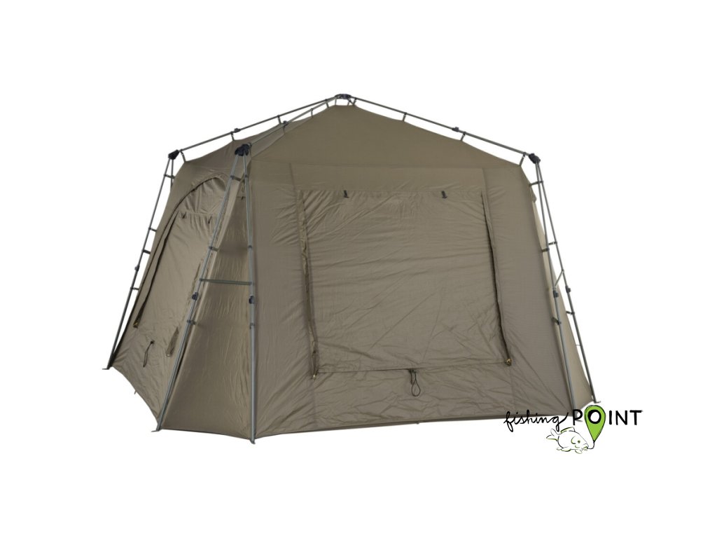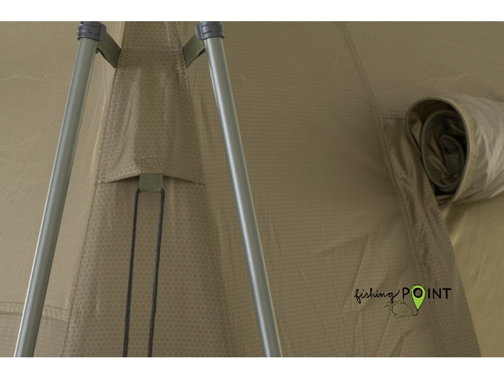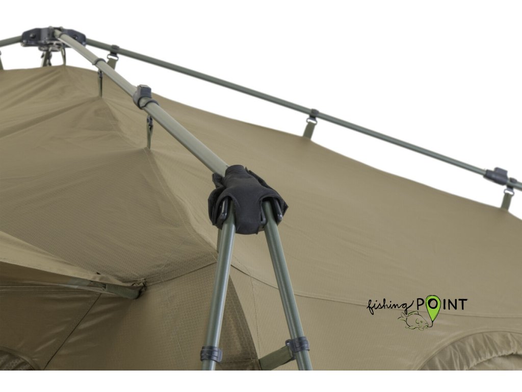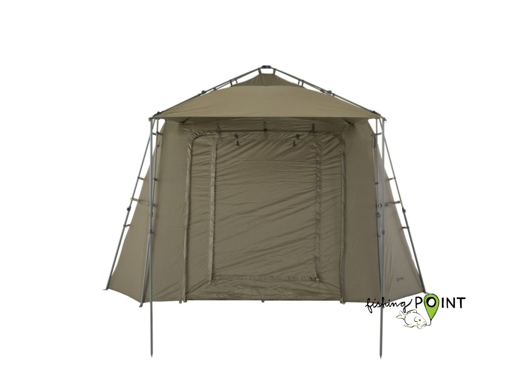 - K přístřešku Base Camp lze pomocí Bivvy Connection Kitu připojit jakýkoliv bivak nebo brolly na trhu