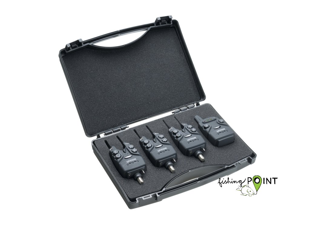 Maximálně vybavené hlásiče s integrovanými chrániči vypadnutí prutu. Čtyři otočné ovladače umožňují nastavení hlasitosti, citlivosti, tónu i barvy hlásiče. Samozřejmostí je vynikající voděodolnost, zvukové rozlišení směru záběru a úsporná poziční dioda (spínaná manuálně). Špičkové komponenty jsou zárukou maximální spolehlivosti za všech okolností, dlouhé životnosti i nízké spotřeby energie. Přijímač umožňuje snadné párování. Rušení přenosu je minimalizováno díky použití plovoucího kódu.Šířka otvoru pro prut: 19 mmPočet kusů v balení: 3x hlásič + 1x příposlechBarva: červená, modrá, zelenáDoplňkové parametry