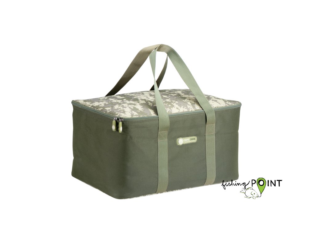 Univerzální, bohatě polstrovaná, hranatá přepravní taška z kvalitního materiál B-POL 600D v atraktivním CamoCODE designu. Kvalitní zipy, táhla a ostatní komponenty zajišťují velkou nosnost a dlouhou životnost. Tašky CamoCODE Cube umožňují bezpečné uložení libovolného příslušenství a zároveň dokonalé využití prostoru při přepravě v autě. Jejich tvar a rozměry jsou navrženy i s ohledem na snadné uložení pod lehátkem během rybářských výprav.Barva: camo / zelená