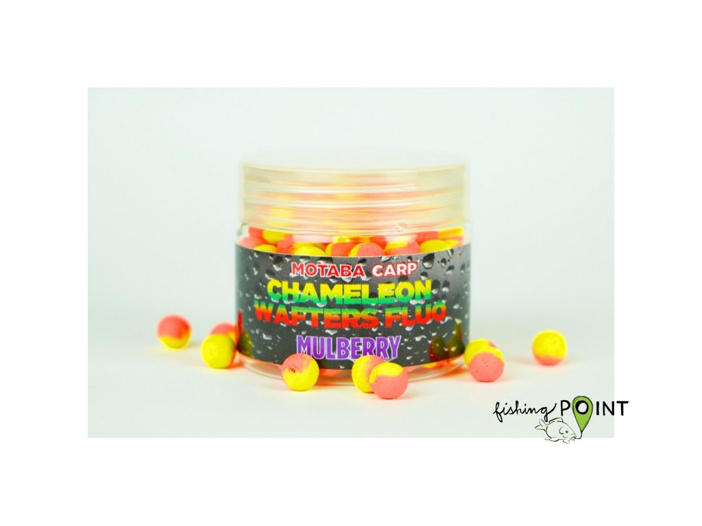 Motaba Carp Chameleon Fluo Wafters Naše produktová řada Chameleon je kombinací dvou barev, Wafters charakteru, výjimečného obsahu a jedinečných příchutí. Obohatili jsme je o jedinečnou přísadu zvyšující chuť do jídla. Pomalé, nepřetržité rozpouštění zaručuje dlouhotrvající dráždění ryb. Kromě přísady zvyšující chuť do jídla, jsme je doplnili nejlepšími doplňky na trhu, které výrazně navyšují jejich vábivou sílu i pro závodní podmínky! Můžeme ji úspěšně používat během celého roku.Doplňkové parametry