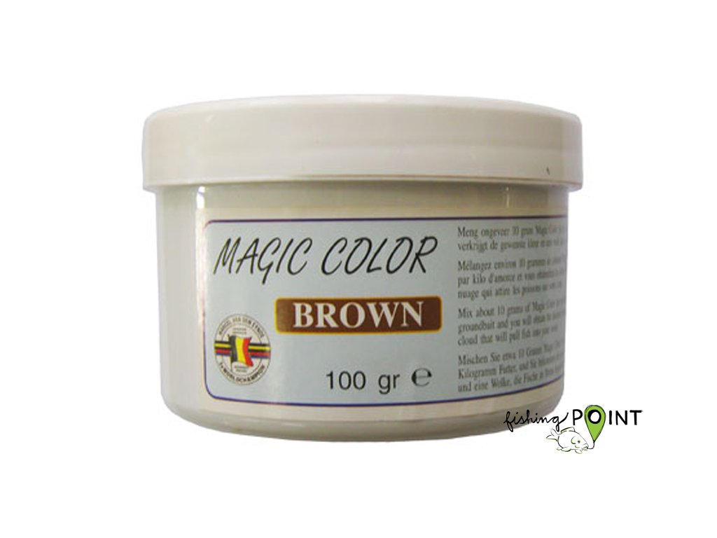 Magic color jsou koncentrovaná barviva používaná k dokonalému přizpůsobení návnady podmínkám rybolovu. Vytváří ve vodě dokonalý mrak, která je při rybolovu žádoucí.Barva do návnad. Brown(hnědá)
