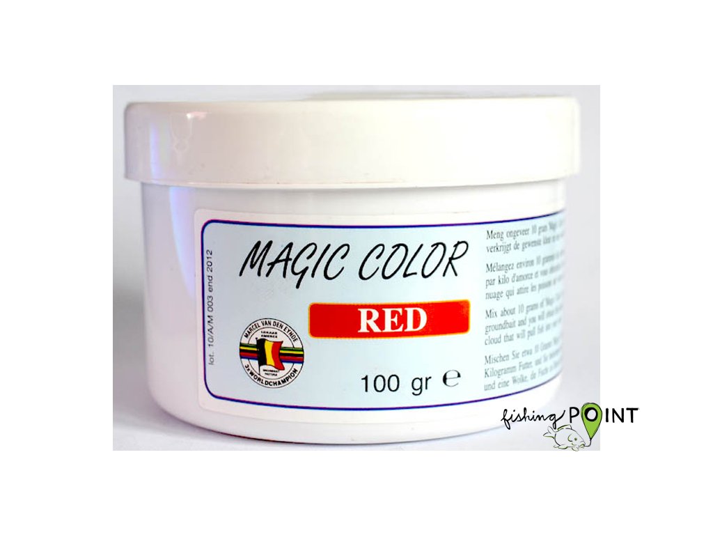 Magic color jsou koncentrovaná barviva používaná k dokonalému přizpůsobení návnady podmínkám rybolovu. Vytváří ve vodě dokonalý mrak, která je při rybolovu žádoucí.Barva do návnad. Red(červená)