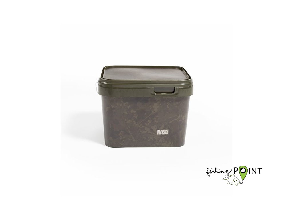 Pevné, nerozbitné čtvercové kbelíky pro prostorově efektivní uložení návnad.Povrch s unikátní kamufláží firmy NASH s legendárními jezery.