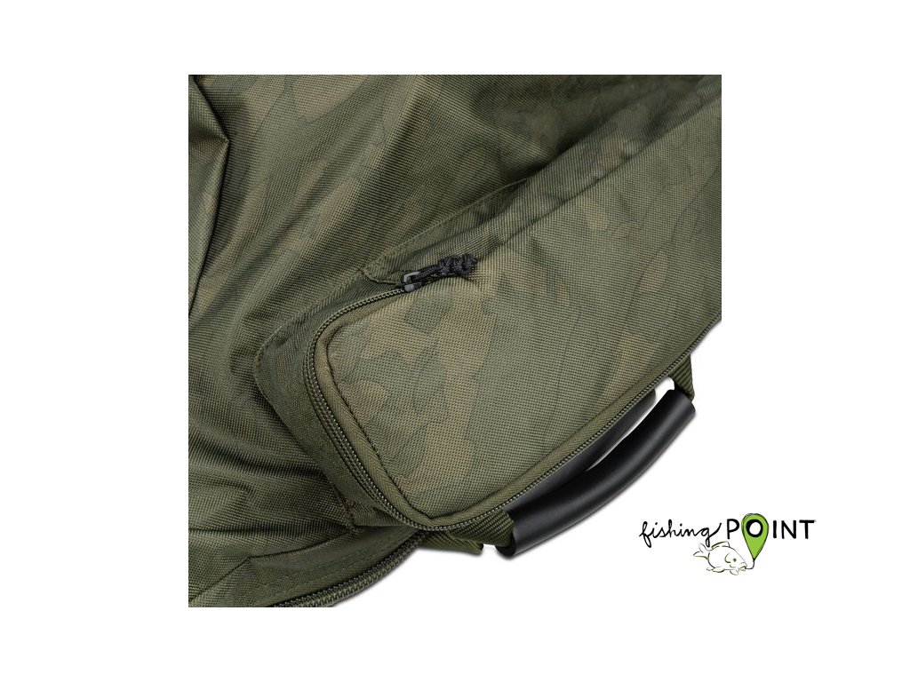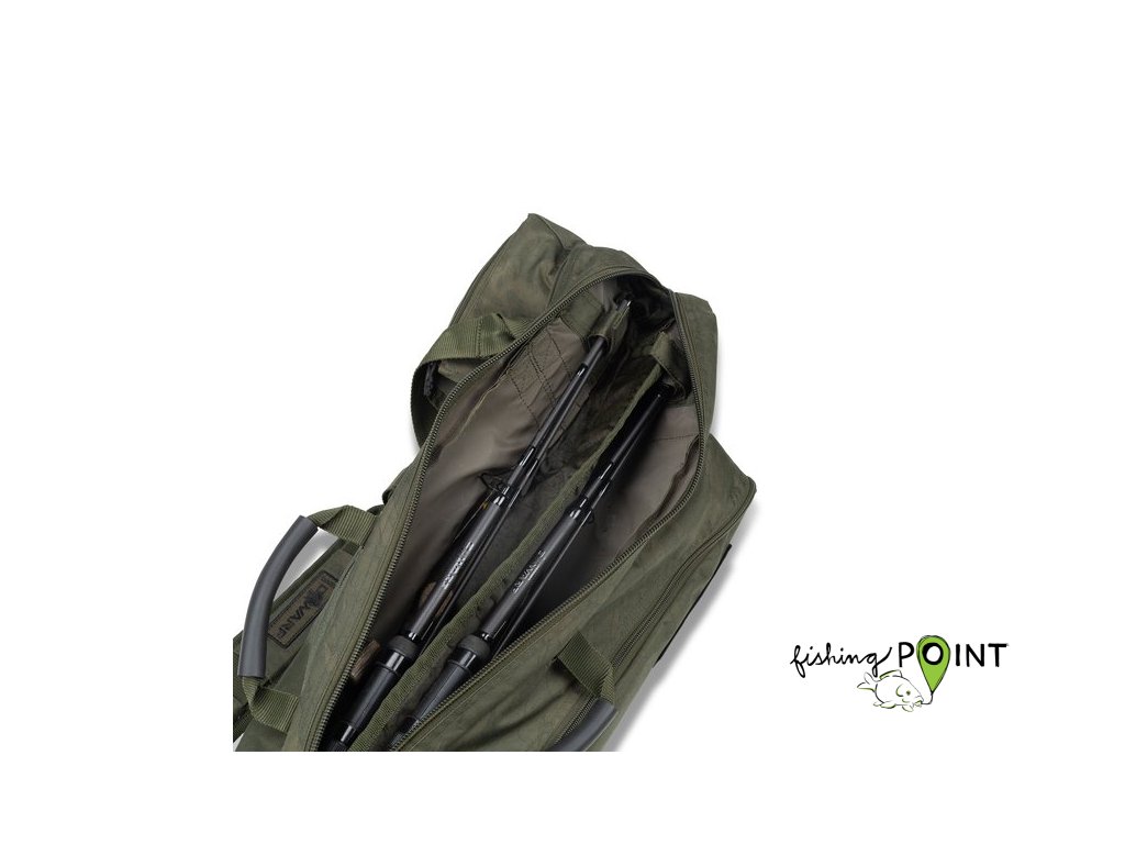 Noste dva složené dwarf pruty s navijáky6ft Double Skin má kapsu na zip pro podběrák T1483 Dwarf Sawnoff Landing Network