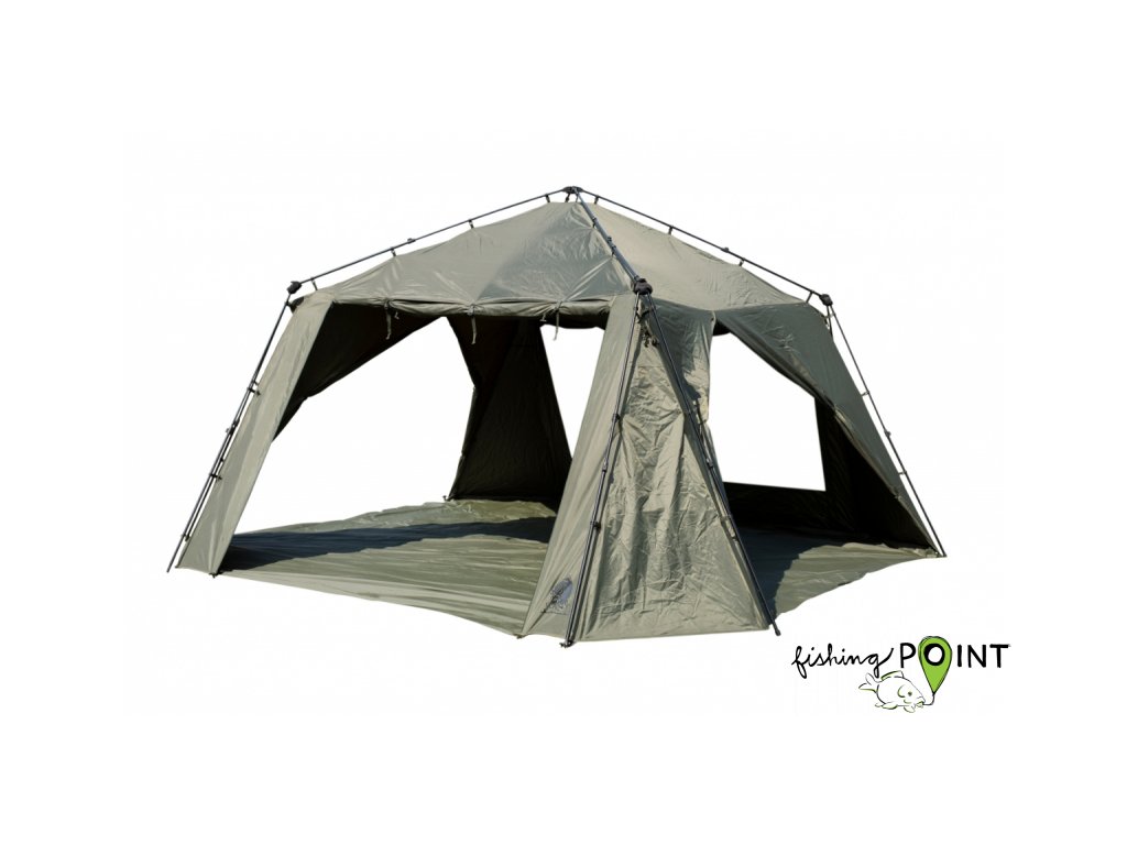Gazebo poskytuje dveře na všech čtyřech stranách. Jedny s dvojitým zipem a poutky, které je jistí a další mají jen jednoduchý systém s jedním zipem a možností srolovat a připnout stěny ke straně. Dvě strany mají i moskytiérové okno, díky kterému může spolehlivě proudit vzduch. Díky skvělému designu můžete po obvodu postavit přístřešky Doubletop nebo Titan a vytvořit tak mezi nimi společný prostor na rybářský život.