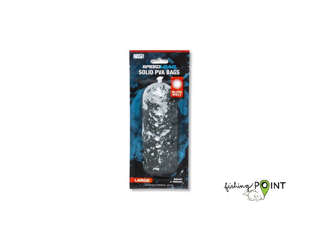 Jsou zasypány speciálním práškem pro manipulaci i za vlhka, který je bez zápachu. Speedload Solid PVA Bag lze plnit a svazovat ručně nebo pomocí trychtýře a plnicí trubice Speedload pro snadnější a rychlejší manipulaci. Jsou k dispozici ve 3 velikostech a 2 rychlostech rozpouštění.