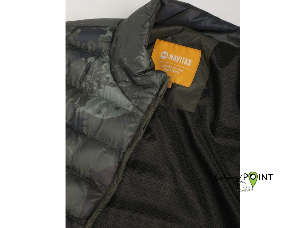 Vesta Bodywarmer je perfektním kusem oblečení, který by vám neměl chybět ve výbavě při vašich rybářských výpravách. Je ideální pro období, kdy není ještě úplné teplo, ale není už také zima. Tato dodatečná vrstva přes mikinu nebo termooblečení zahřeje střed těla a ruce ponechá volné, takže se budete cítit velmi pohodlně a přitom v teple. Je super lehká s plně syntetickou výplní. Design vesty je v originálním vzoru Identity Camo. Vlastnosti: • Zvýšený límec • Nenápadné boční kapsy • Podšívka se vzorem loga Nfinity • Tištěné logo Navitas na hrudi a zádech • 100% syntetická výplň (120g) • Chránič zipu u brady • Vzor Identity CamoDoplňkové parametry