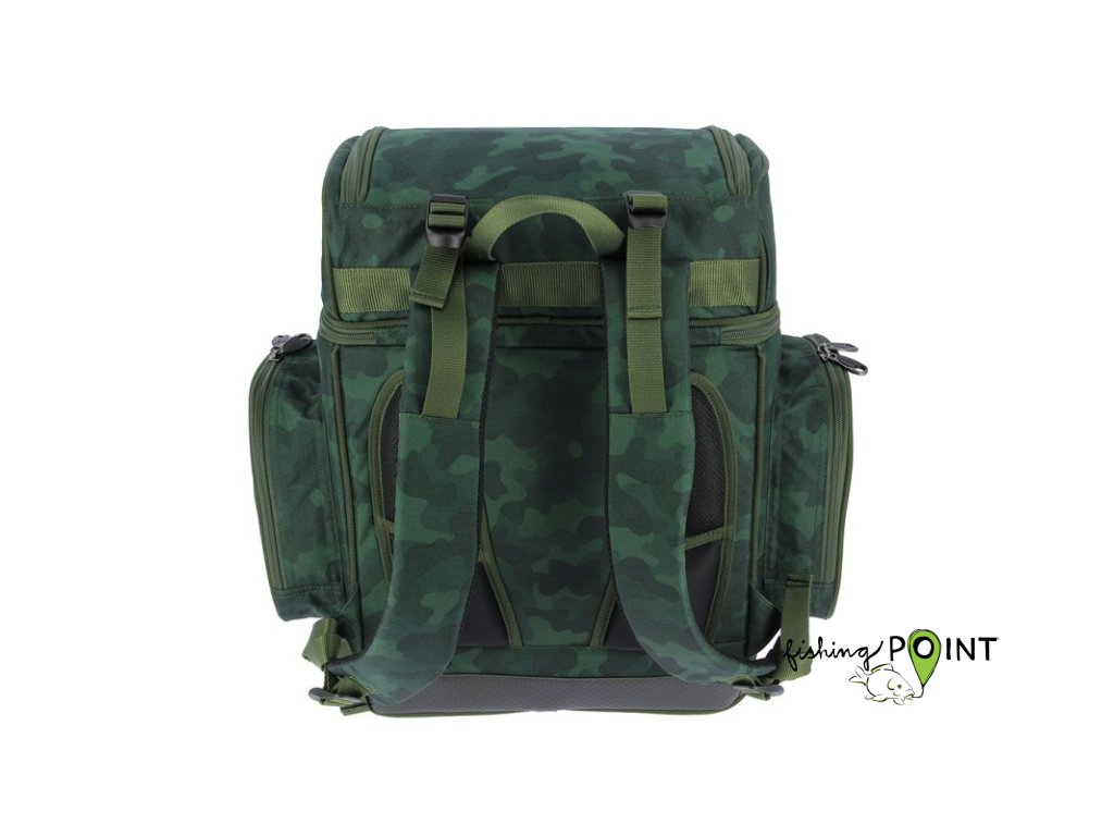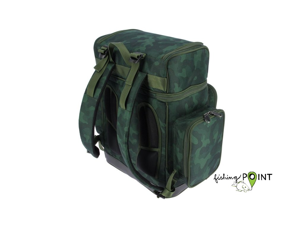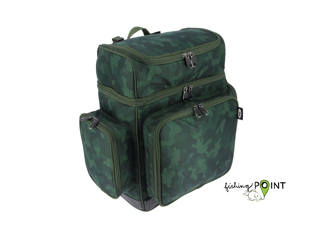 Nový produkt z atraktivní kamo kolekce od anglické značky NGT. Velmi kvalitní a zároveň atraktivní rybářský batoh v moderním designu. Batoh se skládá ze dvou hlavních komor oddělených zipem. Taktéž má další tři kapsy pro uložení různého příslušenství. Batoh má plně polstrované nastavitelné ramenní popruhy pro pohodlnější nošení a dále neoprénem vyztuženou zadní zádovou část. Součástí je pevný a snadno omyvatelný spodek, který je 100% vodotěsný.Rozměry: 45 x 50 x 27 cm Kapacita 50 litrů Vnitřní prostor 33 l Horní integrovaná kapsa 7 l Boční kapsy 2,5 l x 2ks Přední kapsa 5 l Zesílené dno Ergonomická zadní část s polstrovanými ramenními popruhyDoplňkové parametry