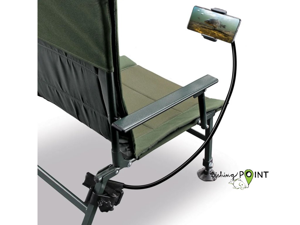 Velice praktický a flexibilní držák na mobilní telefony od britské značky NGT. Tento držák disponuje dlouhým a polohovatelným ramenem, díky kterému si jej snadno nastavíte, jak bude třeba, abyste mohli pohodlně sedět v křesle nebo dokonce ležet na lehátku a přitom mít vždy volné ruce pro okamžitou manipulaci s prutem v případě záběru.Technické specifikace a vlastnosti: