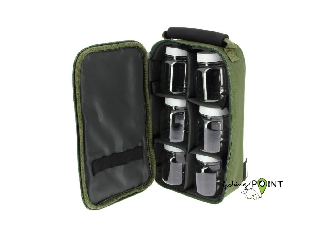 Dobře polstrovaná a velmi povedená taška na dipy. Pokud vyndáte plastové nádoby, lze ji použít i jako klasický obal na rybářské doplňky. Součástí je 6 plastový nádob a samozřejmostí je poutko z neoprenu. Materiál je velmi odolný a pevný 600D polyester s PVC potahem. Velikost: 28 x 15 x 8cmDoplňkové parametry