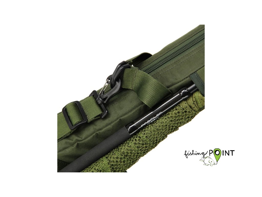 Pouzdro na 2 pruty s navijáky určené predevším pro NGT tzv. extender/ prodlužovací pruty o délce 10 a 12 stop. Pouzdro je dobře polstrované a lze ho přepravovat jak pomocí rukojeti tak za použití nastavitelného ramenního popruhu. Sočástí je boční kapsa na zip a z každé strany jsou pásky na suchý zip pro přichycení podběráku a vidliček. S tímto pouzdrem budete mít veškeré své základní kaprařské vybavení pohromadě a v bezpečí.