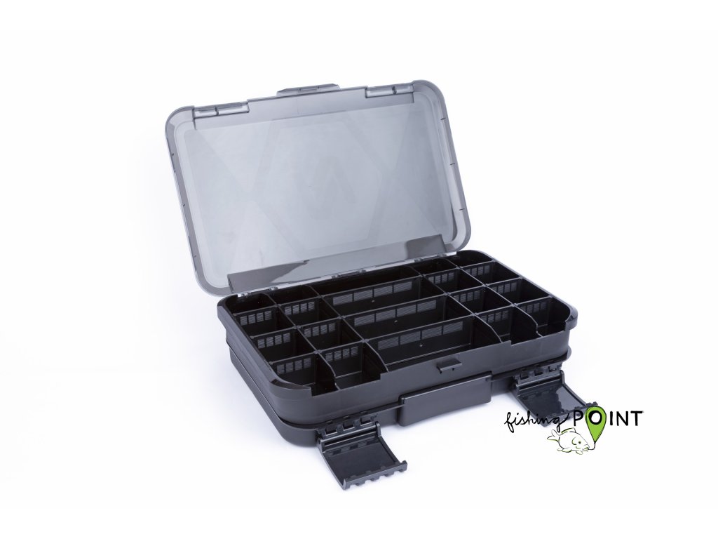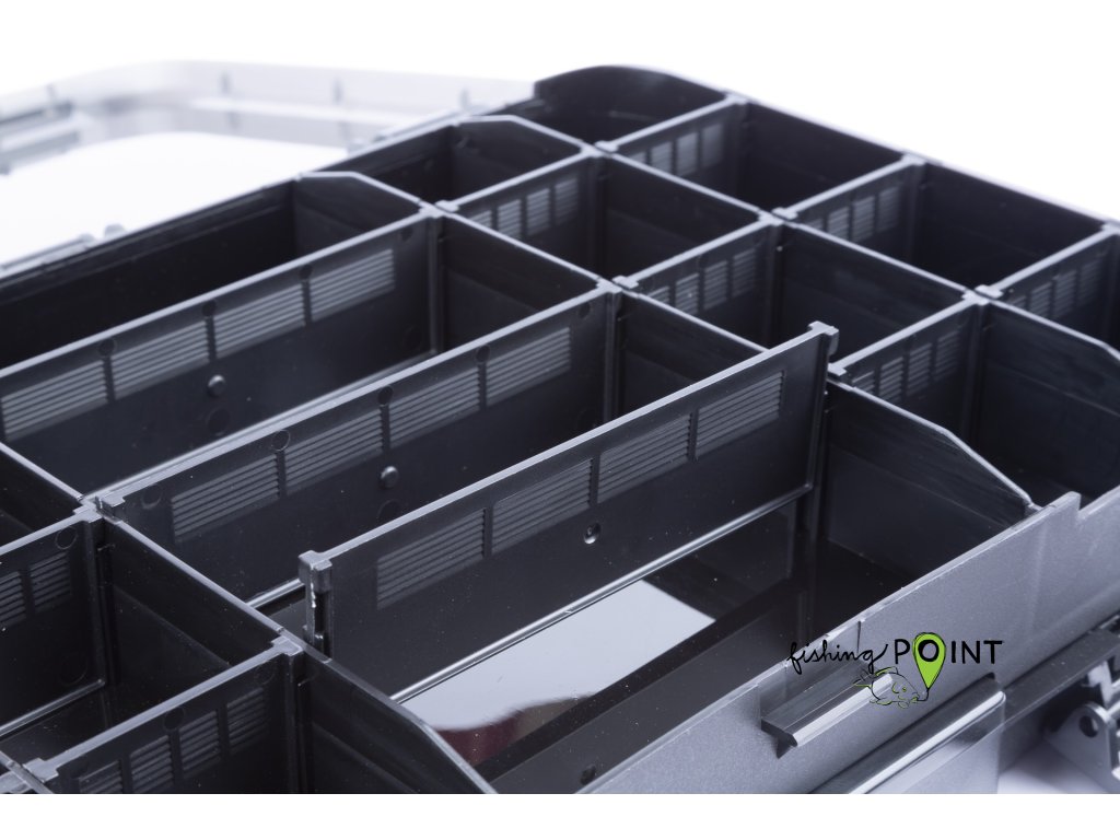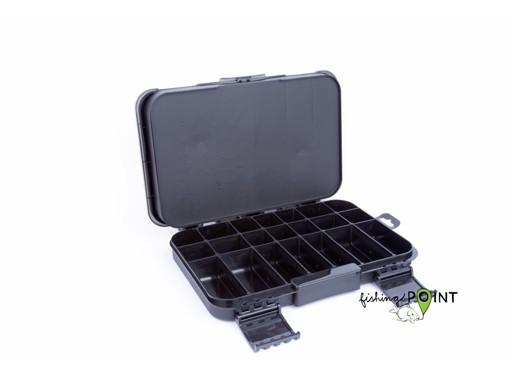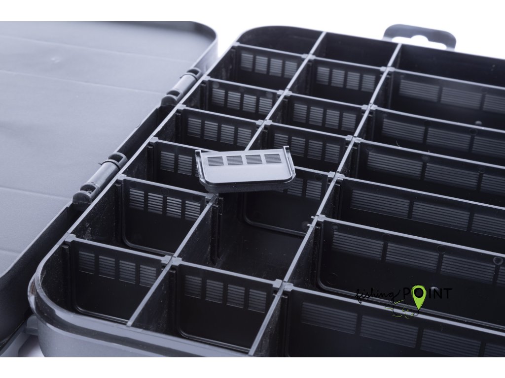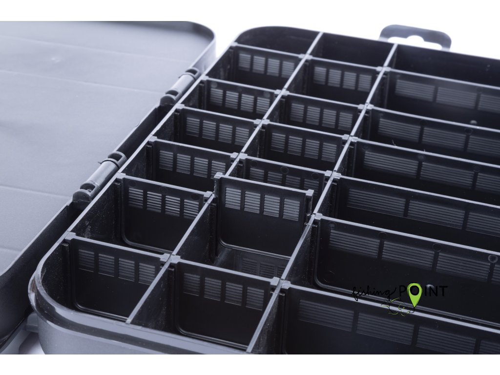 Tato krabička je navržena pro feederové rybáře. Nabízí spoustu prostoru pro vaše krmítka a další bižuterii. Krabičku si přizpůsobíte nastavitelnými přepážkami přesně tak, aby bylo možné přehledně uložit veškeré vaše vybavení. Středně velká krabička, ideální pro menší krmítka a drobné příslušenství, jako jsou obratlíky, korálky, amortizéry apod.