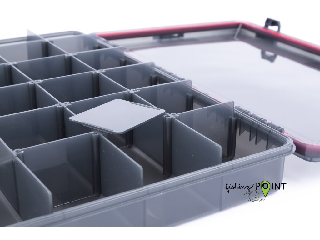 Velká, mělká krabička je ideální pro uložení krmítek a příslušenství, jako jsou obratlíky, korálky, amortizéry apod.Vlastnosti: • Navrženo pro feederové rybáře • Odolný ABS plast • Průhledné víko Gunsmoke • Vodotěsné • Pohodlné a snadné uspořádání • Nastavitelné přepážky • Skvělé pro uložení feederového vybavení doma nebo u vody • Rozměry: 355 x 230 x 50 mm