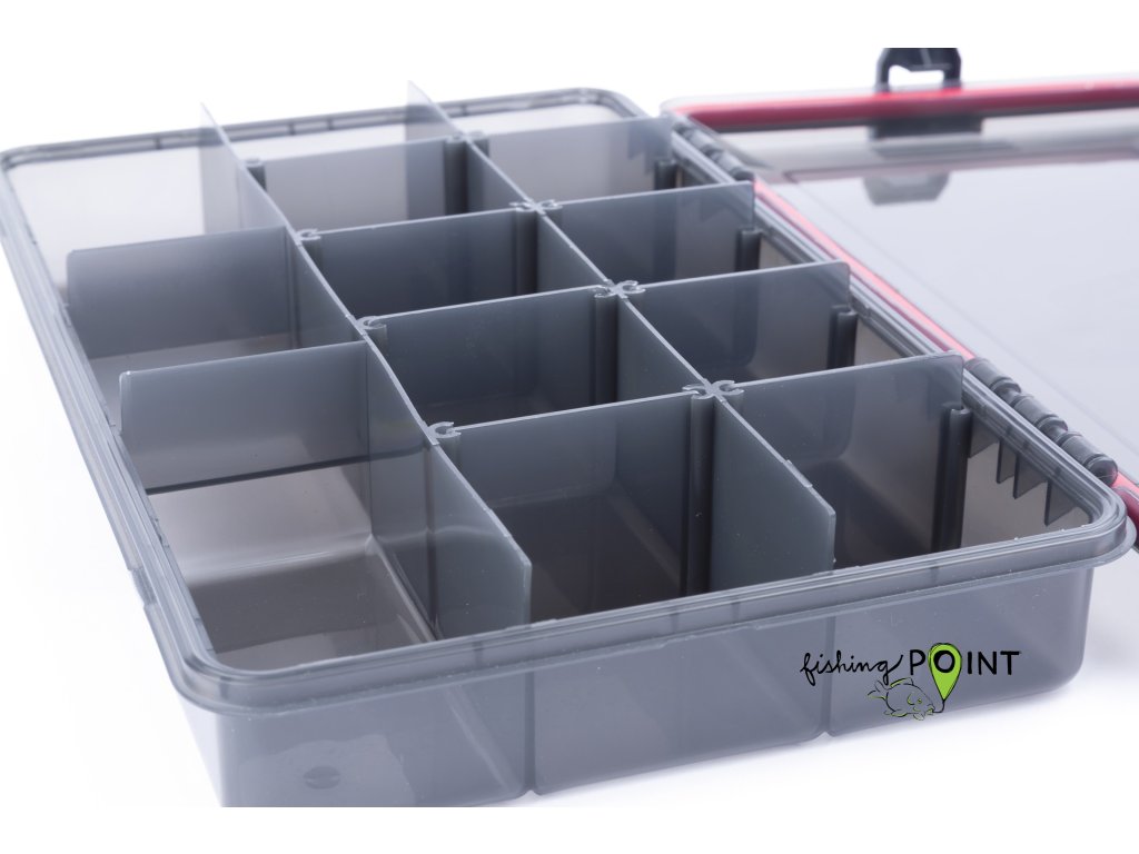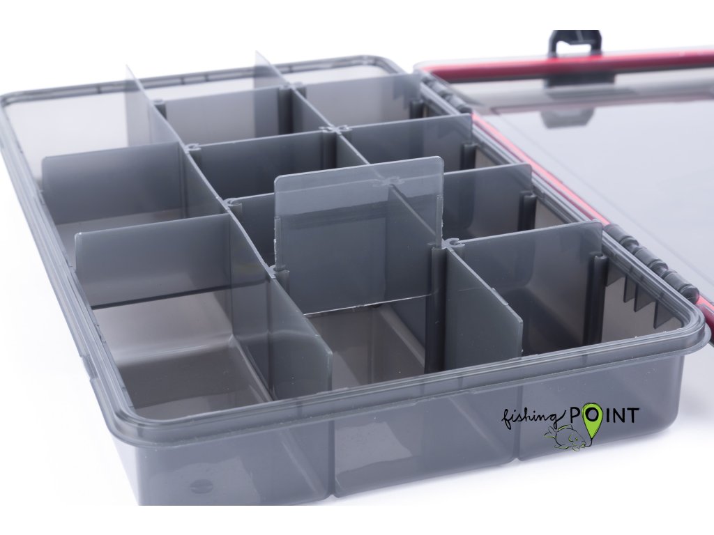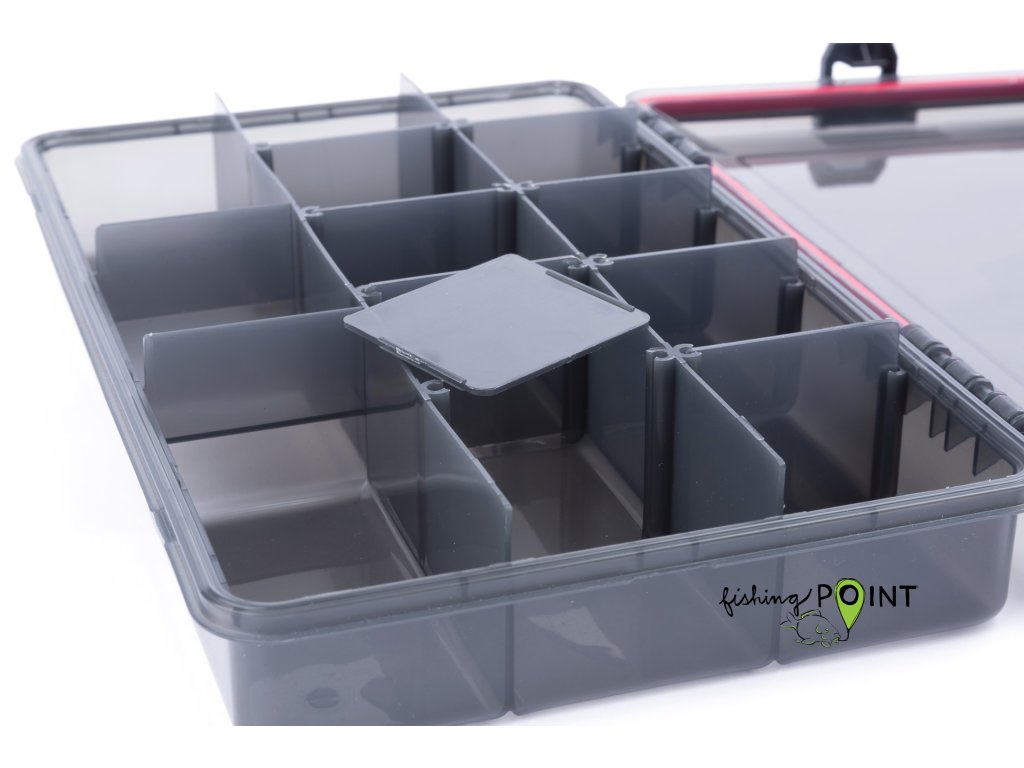 Středně velká, mělká krabička je ideální pro menší krmítka a bižuterii, jako jsou obratlíky, korálky apod.Vlastnosti: • Navrženo pro feederové rybáře • Odolný ABS plast • Průhledné víko Gunsmoke • Vodotěsné • Pohodlné a snadné uspořádání • Nastavitelné přepážky • Skvělé pro uložení feederového vybavení doma nebo u vody • Rozměry: 275 x 180 x 50 mm