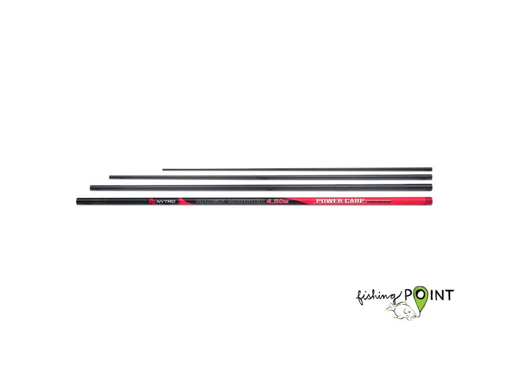 Nytro Margin Muncher 4,5 m je výjimečně silná dělička, která je ideální pro lov těch největších kaprů. Má progresivní akci a je navržena pro použití se silnými gumami. Ideální pro rychlé zdolávání velkých ryb. Margin Muncher je dodáván s PTFE průchodkami, navíjecí zátkou a klíčem. S délkou 4,5 m je ideální pro lov při břehu nebo pro ty, kteří s lovem s děličkou teprve začínají.Vlastnosti: • Karbonový blank • Mimořádně pevný • Předmontované PTFE průchodky • Dodává se s navíjecí zátkou a klíčem • Extra zesílená CF sekce číslo 2 • Konstrukce s možností odpojení • Hmotnost: 225g • Délka: 450cm • Počet dílů: 4 • Přepravní délka: 123cm