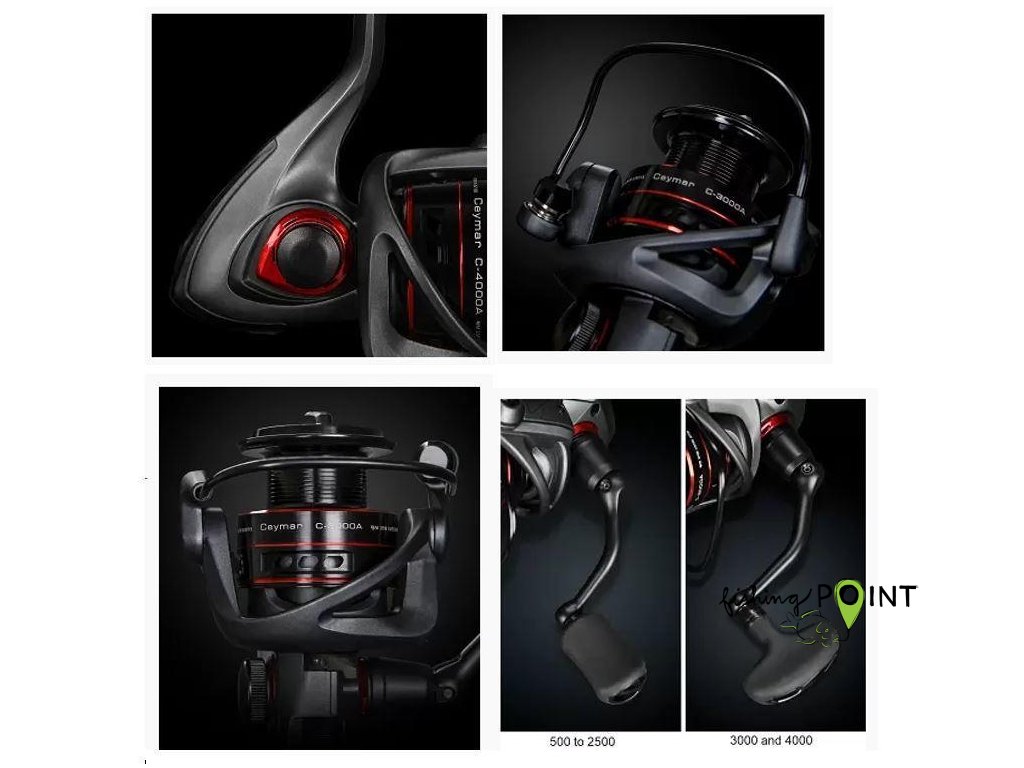 Evoluce renomované série pokračuje! Všestranný přívlačový naviják Ceymar A překoná vaše očekávání. Navíc je vhodný pro rybáře všech stylů a úrovní dovedností. Naviják s korozi odolným grafitovým tělem a rotorem, multidiskovou japonskou brzdou a strojově obráběným mosazným pastorkem. Rychle nastavitelné ložisko má ochranu proti zpětnému chodu.. Naviják má přesný eliptický převodový systém. Dvoubarevná eloxovaná cívka je vyrobena z hliníku. Technologie Flite Drive snižuje tření hlavní hřídele. Rotor je počítačově vyvážený pomocí technologie RESII a díky technologii CFR vytváří cyklonické proudění vzduchu, které výrazně zvyšuje jeho průchod rotorem. Hliníkový rám překlápěče je pevný a odolný. Pevná koková klička s TPE úchopem má ve velikostech 500–2500 tvar I a ve velikostech 3000–4000 tvar T.hmotnost navijáku (g)