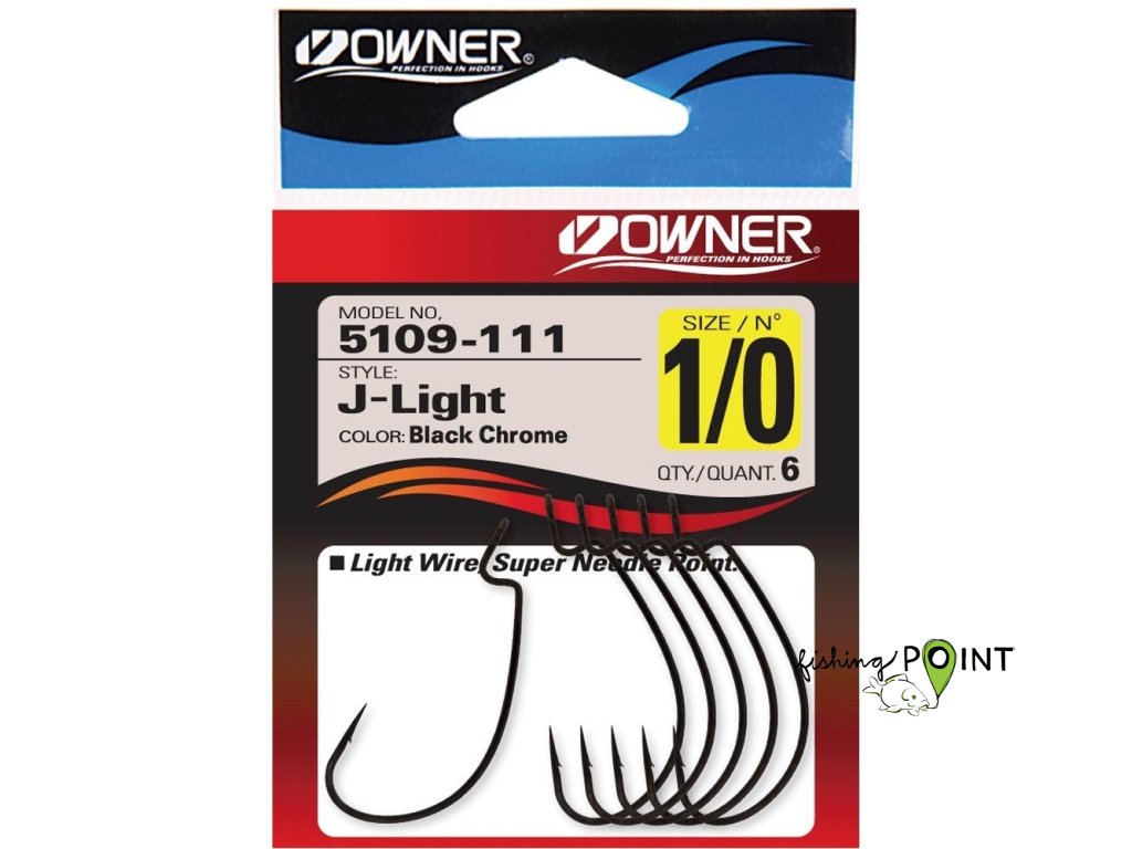 Owner Háček J-Light - black chrome - 5ks, vel. - 3/0 DROP SHOT