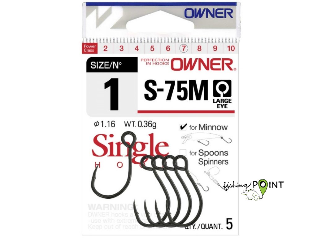 Háček OWNER S-75 - Ideální jednoháček pro nahrazení trojháčků na sladkovodní a pobřežní vláčení nebo trolling. Je zejména vhodný do oblastí se spoustou trávy nebo vázek, které činí lov s trojháčky prakticky nemožný. Tyto jednoháčky také minimálně poškodí ulovené ryby, při jejich poušťění.Doplňkové parametry