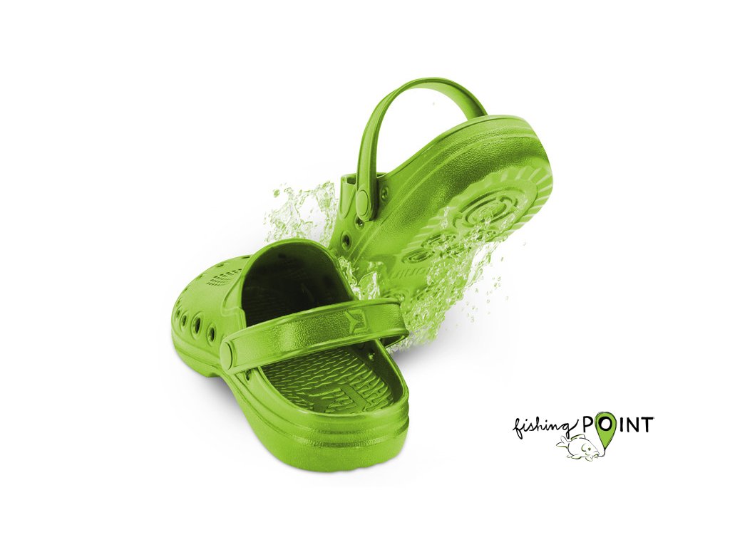 Dalším sofistikovaným prvkem jsou velké postranní otvory, jejichž prioritním úkolem je starat se o odvětrávání a celkovou vzdušnost v této obuvi. Záměrně nejsou navrženy ve výši podrážky, jak to bývá standardem, ale o něco výše. Právě tento detail hraje významnou roli během pobytu na břehu, či mělké vodě. Tím, že otvory jsou o něco vyšší nad vnitřní stélkou je téměř eliminováno nechtěné nabírání písku či kamínků mezi podrážku a chodilo. Vaše chodidla jsou tedy chráněny v maximální možné míře. Kromě těchto otvorů slouží k odvětrávání hustá perforace umístěna ve vrchní části. Ta je záměrně vytvarována na jedné straně do symbolu D z loga Delphin, na druhé vsuvce zase kraluje symbol O, jako počáteční písmeno názvu OCTO. Celkový dojem ještě zhodnocuje jemná struktura na povrchu pantoflí, která evokuje kůži chobotnice. Díky použitému EVA materiálu jsou mimořádně lehké, houževnaté a dokonce plovoucí. Samozřejmostí je u tohoto modelu poutko na fixaci paty (lidově nazývané i uzávěrka), které oceníte zejména v nerovné, či svahovitejšom terénu.