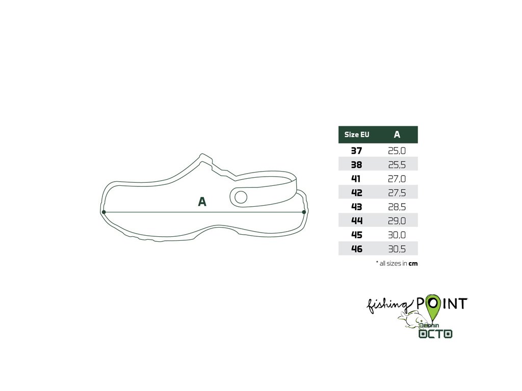 Vzhledem k tomu, že během rybolovu je nutné často chodit po nerovném terénu, jsme se při vývoji zaměřili na podešev, která je podstatně pevnější a masivnější ve srovnání s levnějšími konkurenčními modely. Právě to zaručuje, že chození v těchto vsuvkách bude maximálně komfortní a dokonale odfiltruje nerovnosti terénu. Při podešvi ještě chvíli zůstaneme. Právě tam začíná příběh názvu OCTO. Stylizovali jsme ji totiž do tvaru přísavek chapadel chobotnice, což zaručuje výborný grip za každých podmínek. Právě chobotnice, anglicky OCTOpus, anebo latinsky OCTOpod byly inspirací pro kompletní design a název ve zkrácené forme - OCTO.
