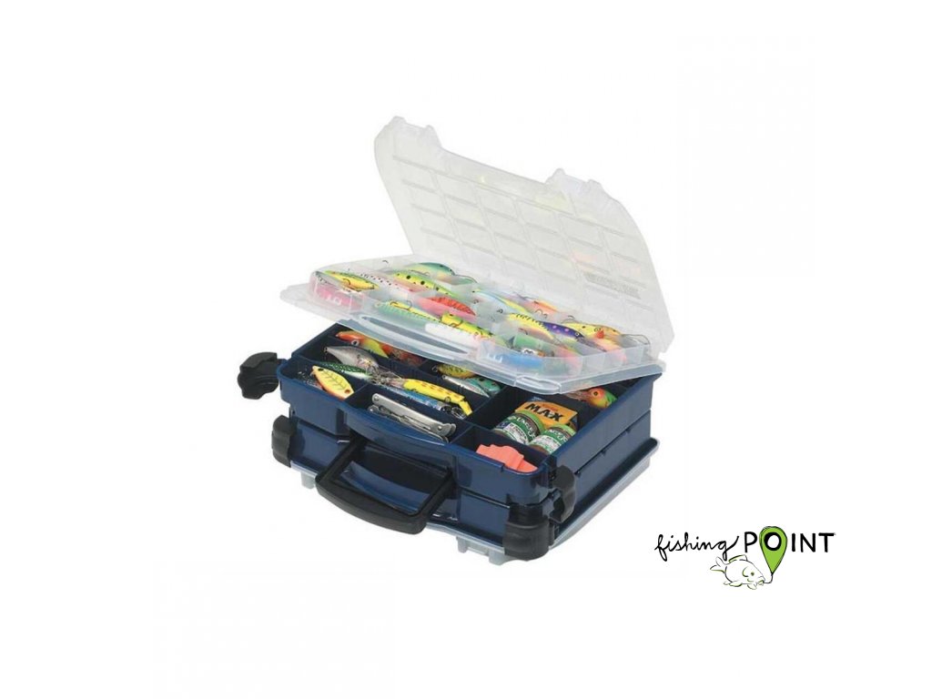 Plano 3952-10 praktický oboustranný kufřík s výsuvnou rukojetí. Výška modrých pater je 6 cm , průhledných 2,5 cm. délka 36 cm šířka 30 cm výška 17 cmDoplňkové parametry