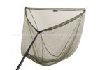 První část sady s velkou síťkou z měkké tkaniny zelené barvy a silným trojúhelníkovým rámem je klasická kaprařská podběráková hlava s obrovskou hloubkou sítě.