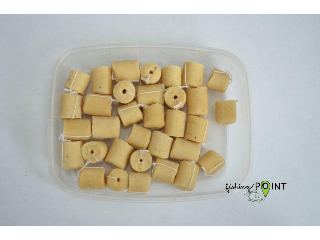 Kapří pelety vázané - pro sportovní rybolov - vyrobeno z extrudované kukuřičné mouky, mletých obilovin, lepku, cukru, tuku, aromat a smáčedla.