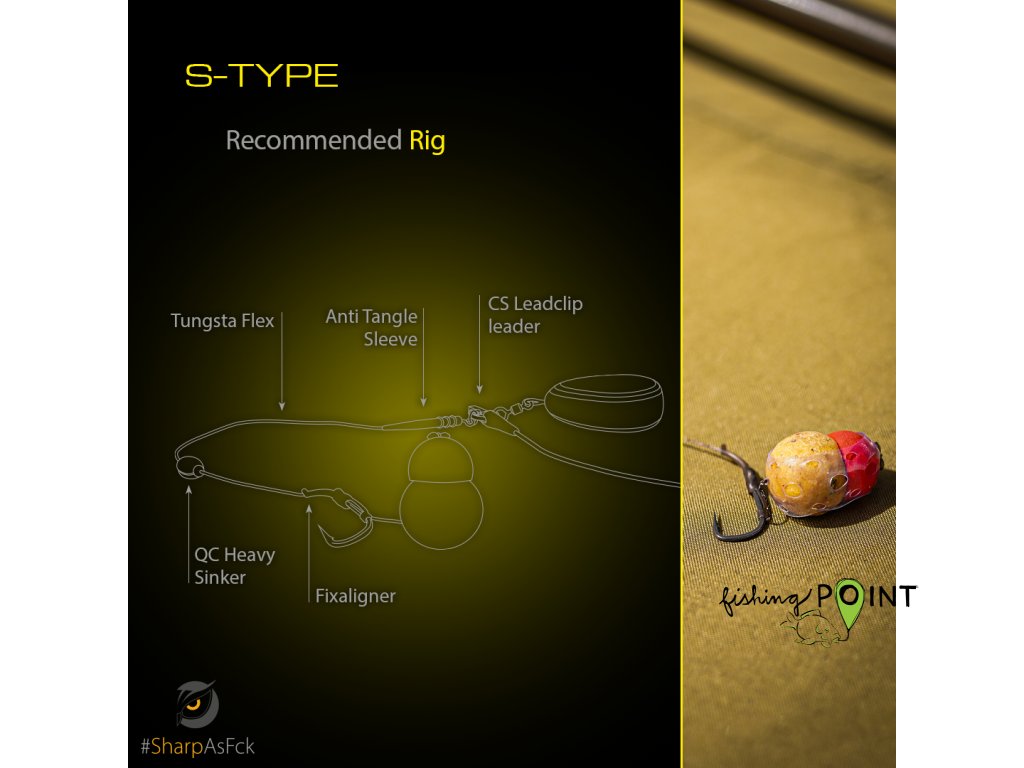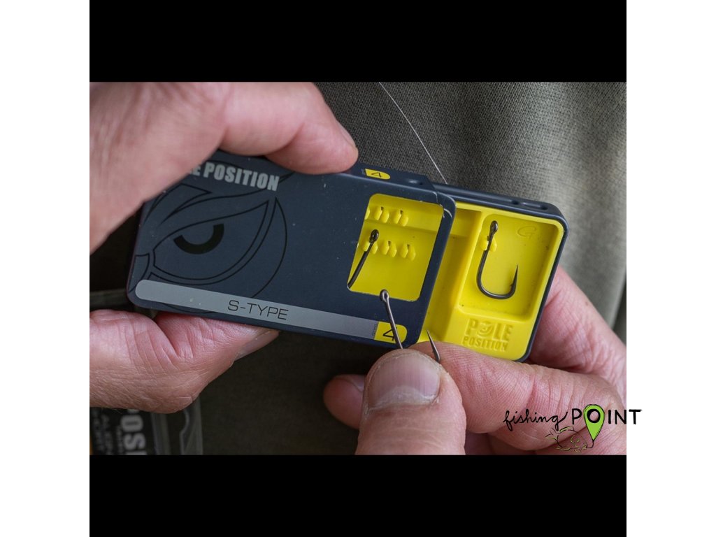 Tyto háčky byly vyvinuty ve spolupráci s největším Japonským výrobcem háčků firmou Gamakatsu a navrhnuty naším vývojářským týmem Pole Position. Toto vede k háčkům, které excelují silou, designem a především ostrostí. S-Type je vhodný k použití různých podmínkách a je takovým typickým modelem v portfóliu Pole Positon. Kombinace velmi dlouhého, lehce dovnitř zahnutého hrotu (s micro protihrotem) a středně dlouhého rámínka, dělá tento háček extrémně agresivní Prodloužením háčku s již připraveným rovnátkem a nebo stahovací trubičkou, umožní ještě rychlejšímu záseku.V balení 10ks