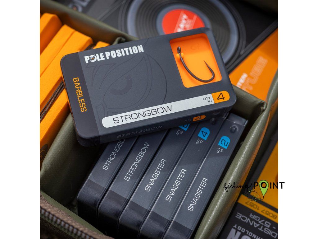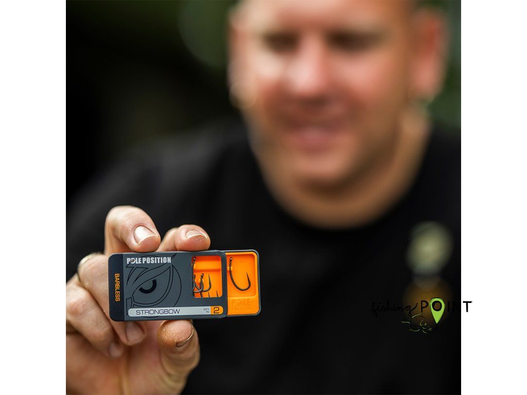 Tyto háčky byly vyvinuty ve spolupráci s největším Japonským výrobcem háčků firmou Gamakatsu a navrhnuty naším vývojářským týmem Pole Position. Toto vede k háčkům, které excelují silou, designem a především ostrostí. Strongbow je velmi populární tvar háčku a my ho dotáhli k dokonalosti. Ramínko je lehce zahnuto, ale né zas moc, aby se kapr při boji neporanil. Je vhodný k použití v různých podmínkách a je takovým typickým modelem v portfóliu Pole Positon. Kombinace velmi dlouhého hrotu a lehce zahnutého ramínka dělá tento háček velmi agresivním. Použitý drát je extrémně silný, tudíž můžete být bez obav, že by se ohnul i během těch nejtvrdších podmínek. Prodloužením háčku s již připraveným rovnátkem a nebo kickerem není nezbytné, ale může být použito.Balení 10ks