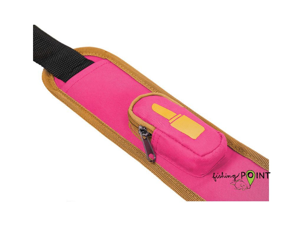 Na boku pouzdra se nachází dlouhá kapsa se zipem, která poslouží například na transport podběráku nebo vidliček. Na ní je našita ještě jedna kapsa také s klipem, která na rozdíl od modelu PORTA není prošitá napůl, a tak poskytuje větší prostor a variabilitu. Další skvělá vychytávka, která jistě potěší všechny ženy, které se o sebe rádi starají i u vody, se nachází na ramenním popruhu, kde je na měkčené části umístěna malá kapsa s piktogramem rtěnky. Kromě kosmetických pomůcek je zde samozřejmě možné uložit například olůvka, případně jiné rybářské drobnosti.