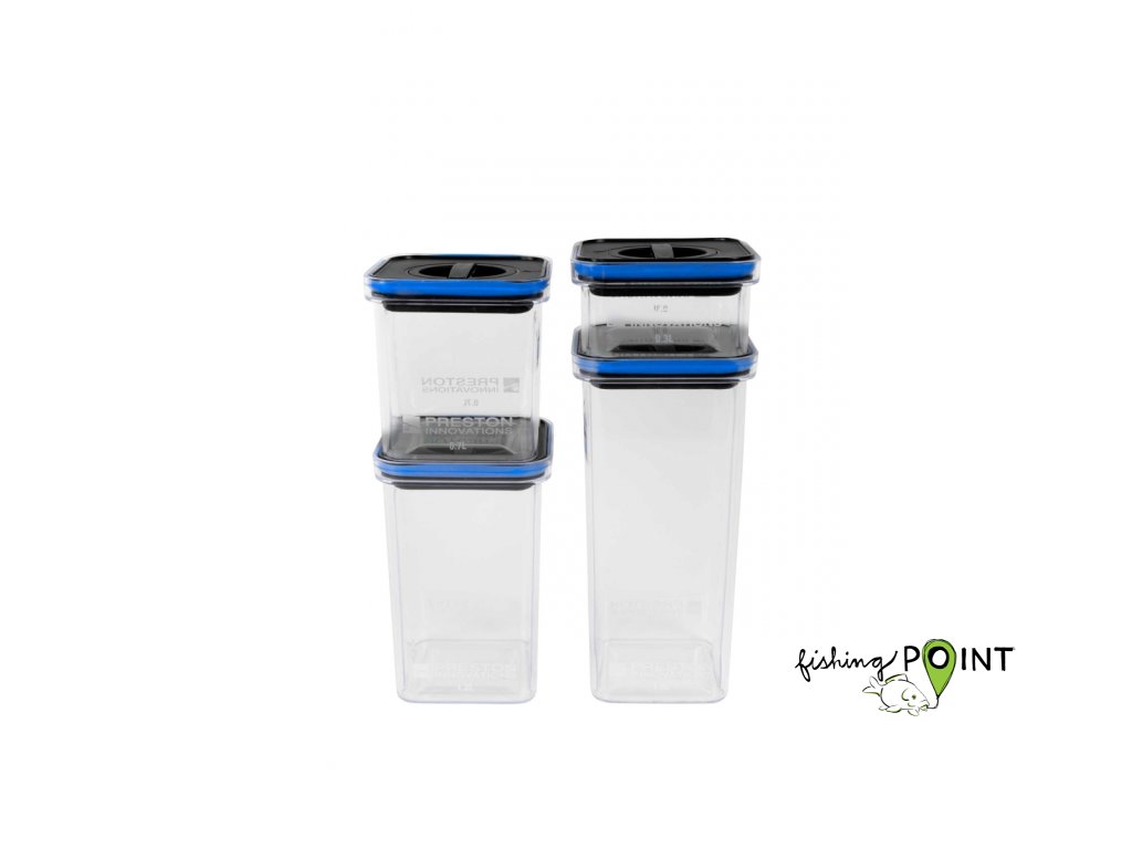 Navržené tak, aby udržely různé nástrahy čerstvé a chráněné před povětrnostními vlivy. Mají otočný zámek, vzduchotěsné víko a robustní stěnu z průhledného plastu pro snadnou identifikaci.K dispozici ve čtyřech velikostech:0,3 l/0,5 pinty0,7 l/1,2 pinty1,2 l/2,1 pinty1,6 l/2,8 pintyDoplňkové parametry