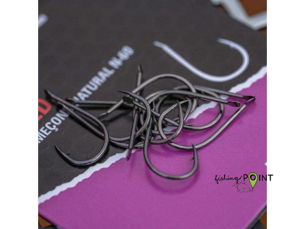 Silný tvar s kulatým obloučkem, dlouhým ramínkem a velkou lopatkou. Ideální pro použití se silnějšími vlasci a většími nástrahami, jako jsou červi, kukuřice, pelety a maso. Dostupný v černé niklové povrchové úpravě, opatřený protihrotem a ostrý jako břitva.K dispozici ve velikostech 6-1415 ks v balení.