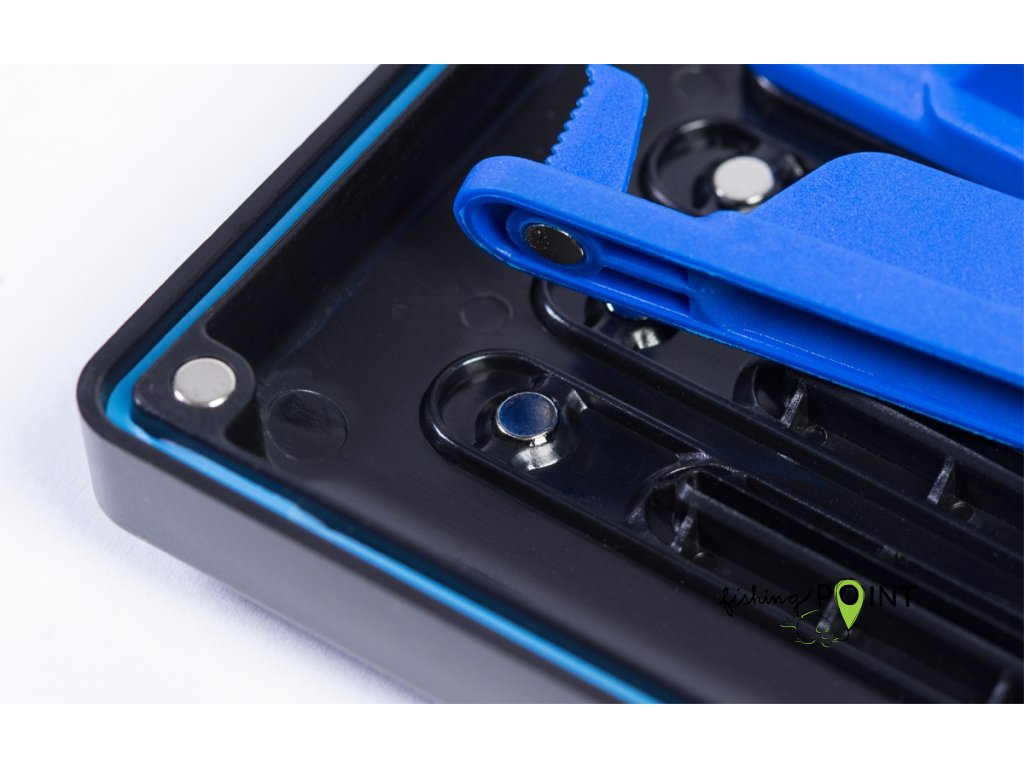 Odolný plastový box na návazce s novým úložným magnetickým systémem.8 jednotlivých plastových držáků na návazce dlouhých 38 cm ( 15")