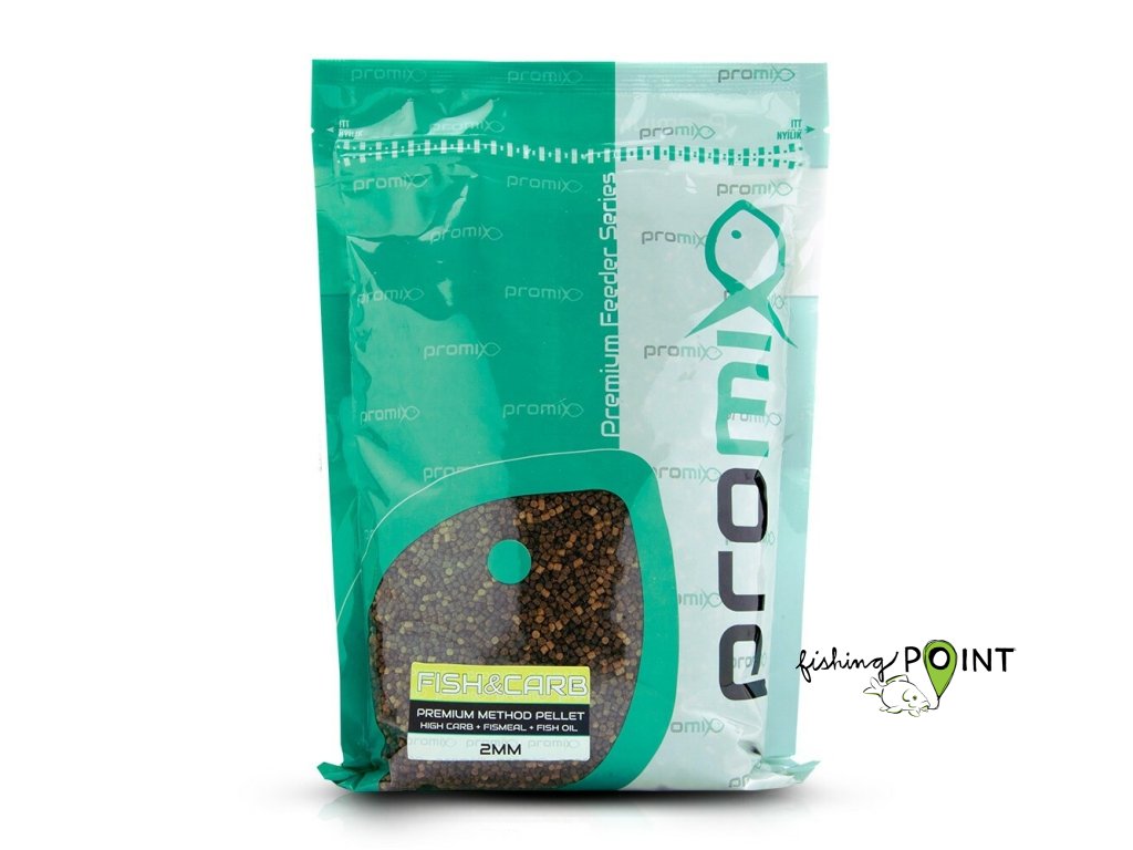 Složení pelet Promix Fish & Carb method je navrženo tak, aby byl kromě vysokého obsahu bílkovin 35 % zachován i obsah lehce stravitelných sacharidů. Vznikla tak komplexní směs obsahující všechny potřebné živiny a výborné ukazatele vnitřního obsahu. Kromě nejkvalitnější rybí moučky je její obsah bílkovin doplněn o rostlinné bílkoviny prémiové kvality, mezi nimiž je největší důraz kladen na proteiny z konopných a kukuřičných klíčků. Má vysoký obsah vlákniny, která zaručuje snadnou stravitelnost.Jsou bohatý na vitamíny a esenciální oleje. Jejich obsah oleje je převážně rybí tuk, lososový olej a tuňákový olej, které přitahují ryby téměř jako magnet.