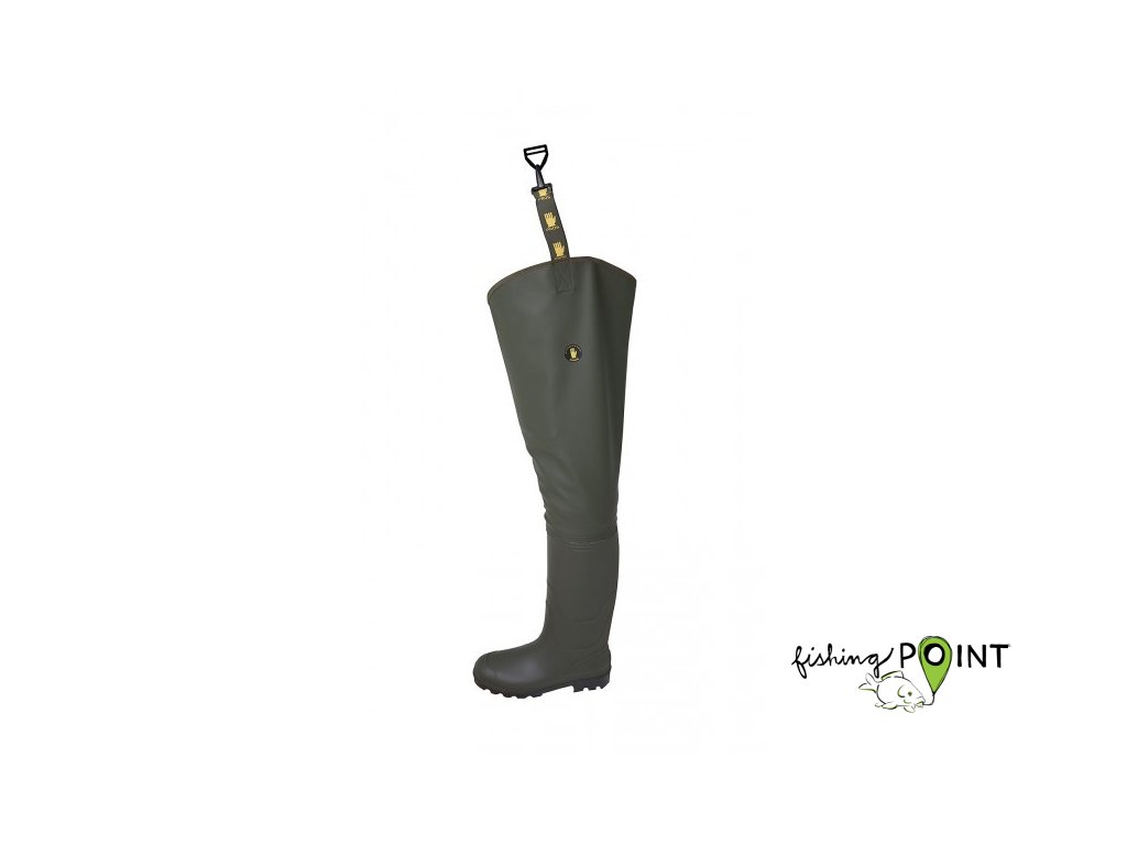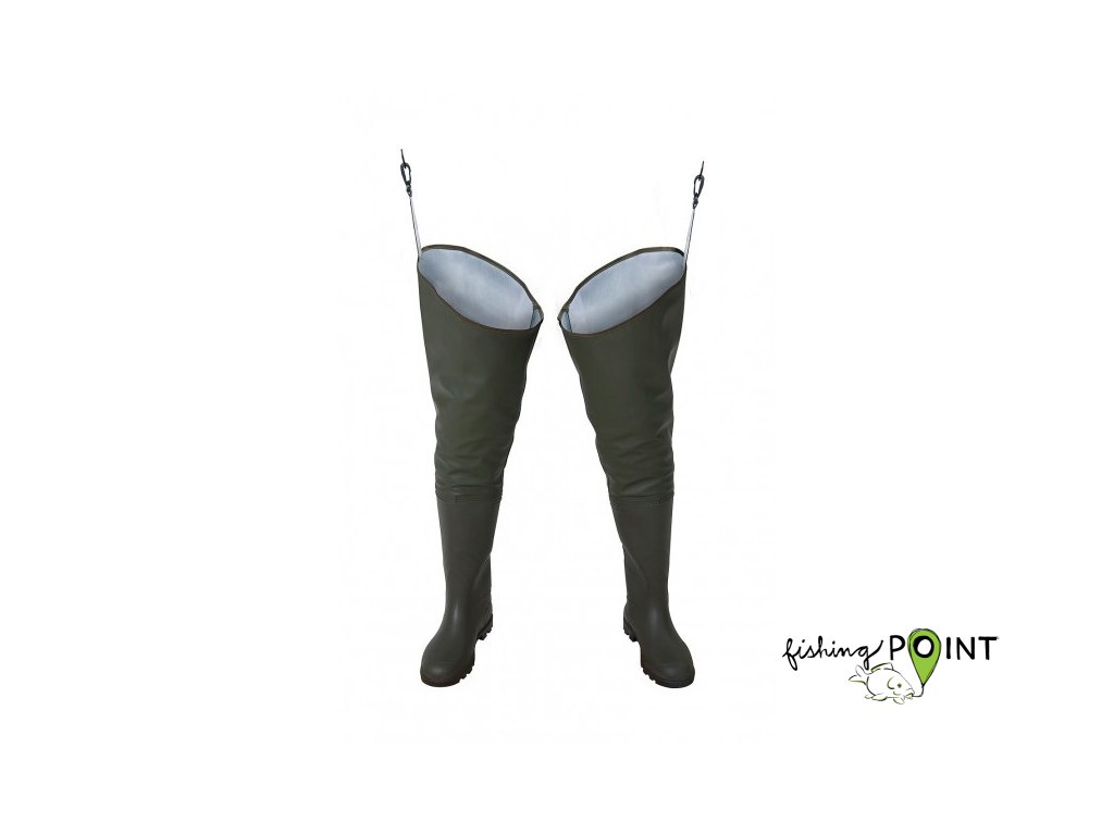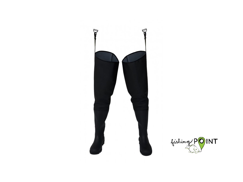 Stehenní brodící boty "STANDARD" z PLAVITEX Heavy Duty materiálu (PVC /polyester, hmotnost 700 g / m2). PLAVITEX je velmi silná technická textilie vysoce odolná proti mechanickému poškození. Dodatečné kolenní vyztužení chrání proti případnému oděru a poškození.Doplňkové parametry