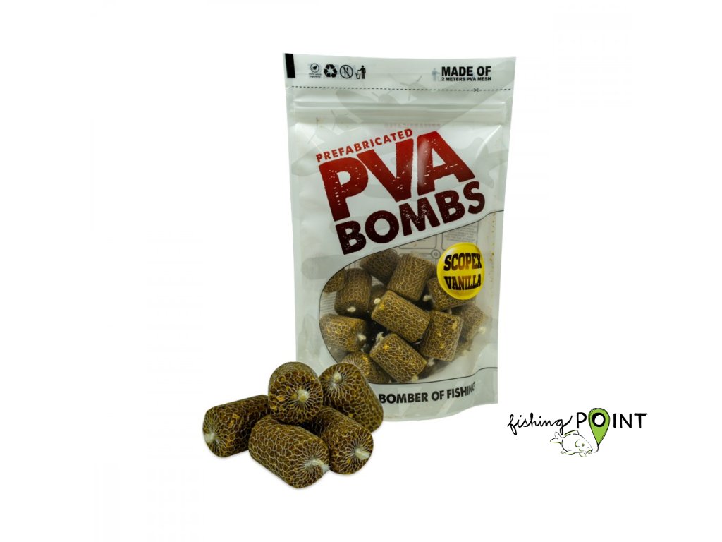 Kvůli vysokému obsahu melasy pomaleji rozpouští a déle vyzařují sílu. • „Používání PVA produktů je naplňujeme potřebné kvalitě není jednoduché, v deštivém počasí je to skutečně obtížný úkol. Sáčky PVA BOMBS po vyjmutí z balení zavěšené na háček, nebo navlečené na návazec, můžeme je hned používat. Tato vlastnost je velkou výhodou i na závodech, kde je rychlost velmi podstatná.