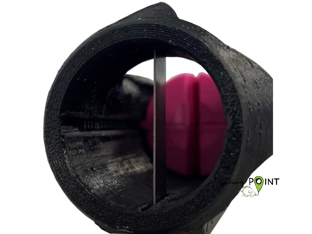 Kráječ boilie je vyvinut tak aby Vám ulehčil krájení boilie. Kráječ je kompatibilní s PVA mesh systémem to znamená že krájené boilie můžete aplikovat přímo do PVA. Použití produktu je velmi jednoduché. Do připraveného otvoru vložte boilies o maximálním průměru 25 mm a zatlačte na růžovou rukojeť, následně můžete pokračovat ve stejné postupu. Boilie vypadává do Vámi určené nádoby.