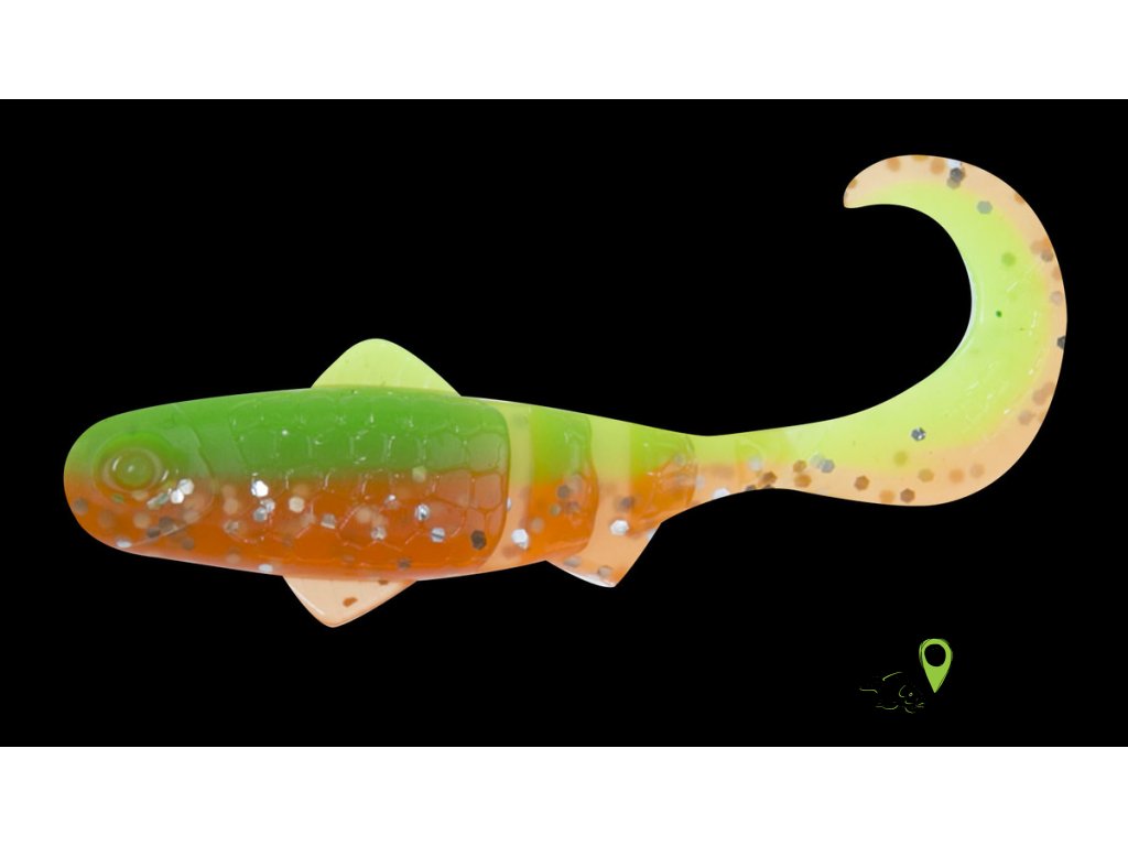 Relax Gumová nástraha Super Banjo 3 - 7,5cm CHARTREUSE-ORANGE, BLACK GLITTER silk