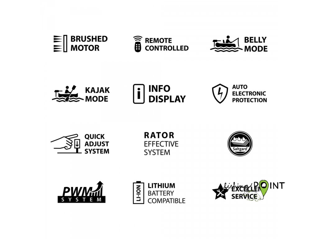 Motor, který zvládne všechno! Rhino představuje nový model CR30VF! Kompletně dálkově ovládaný! Řízení, rychlost, korekce směru, zpátečka. Vše lze provádět prostřednictvím praktického dálkového ovladače. Je dokonce odolný vůči slané vodě. Pro použití jako příďový nebo záďový motor. Přibližně 28lbs tahu pohodlně vypraví na cestu nejen velké čluny, ale i středně velké čluny a loďky. Řízenísměru nebo jízdy rovně? Žádný problém! K dispozici je vynikající funkce pro obnovení přímého směru z jakéhokoli směru řízení stisknutím tlačítka. Stisknutím tlačítka lze také otočit řízení. Ať už sedíte kdekoli u motoru, bude se vždy pohybovat ve směru, ve kterém stisknete tlačítko. Nyní také s funkcí zpětného chodu pro zastavení a korekci kurzu. Co víc si můžete přát?Rozměry: 97x28x14cm