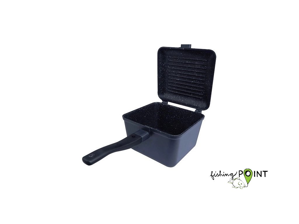 Pánev Connect Deep je super kompaktní, odlehčená s unikátním odnímatelným systémem, který přemění jednu pánev na dvě – hluboký hrnec a samostatnou pánev, kdy víko hlubší pánve lze použít jako samostatnou pánvičku a můžete vařit dvě jídla najednou. Pánev na grilování je také zaměnitelná s toustovačem RidgeMonkey Connect Sandwich Toaster Granite Edition. Stejně jednoduše můžete nyní odejmout rukojeti, které se bezpečně ukládají dovnitř toasteru s ochraným pouzdrem. Nepřilnavý Granite povrch, který je vhodný pro přípravu různých pokrmů, od obyčejných toastů, až po plnohodnotné jídlo!